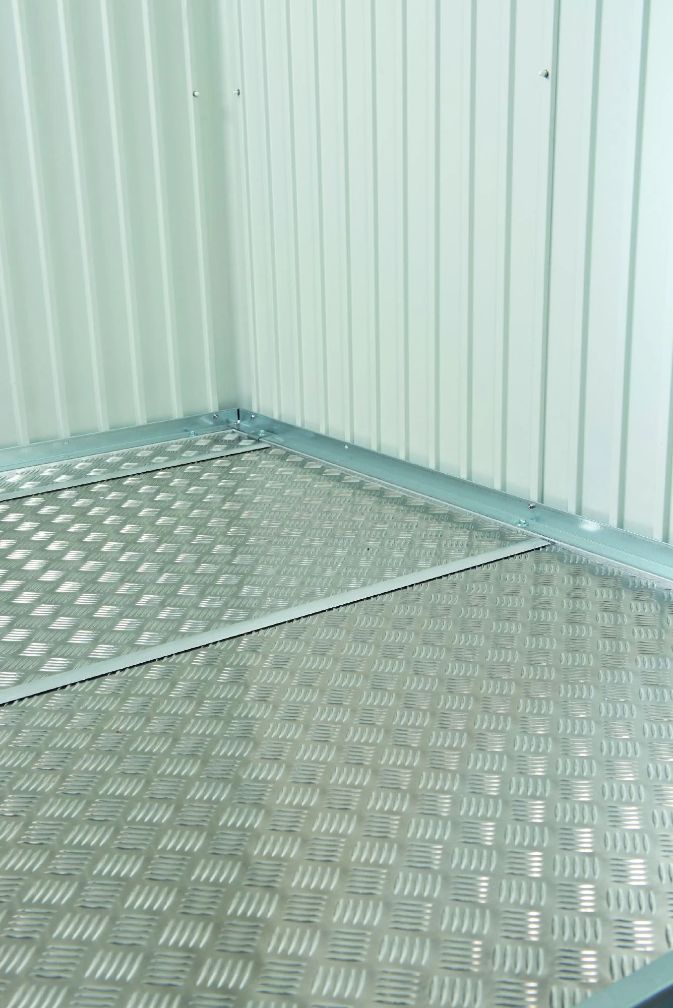 Hochwertiger Alu-Riffelblechboden, elegant und funktionell. Der Boden besteht je nach Hausgröße aus 3 bis 5 Segmenten inklusive Verbindungsschienen. Zur optimalen Verlegung der Alu-Bodenplatten ist der Alu-Bodenrahmen erforderlich.