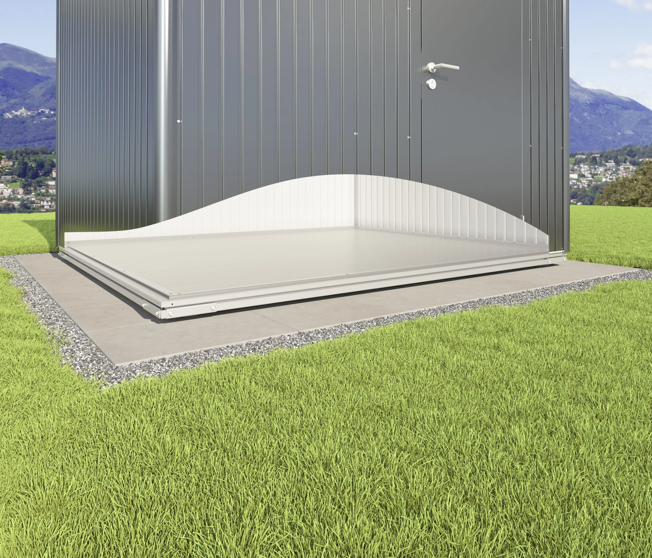 Das Biohort SmartBase Fundament ist das ideale Fundament für betonierte oder gepflasterte Flächen. Es besteht aus hochwertigen Aludielen, einem speziellen Fundamentrahmen und höhenverstellbaren Stellfüßen. So können leichte Bodenunebenheiten von bis zu 4 cm ausgeglichen werden.