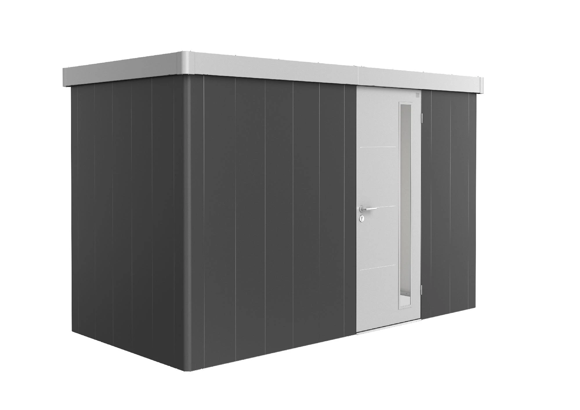 - Farbe: Wandfarbe: dunkelgrau-metallic, Tür- und Dachfarbe: silber-metallic