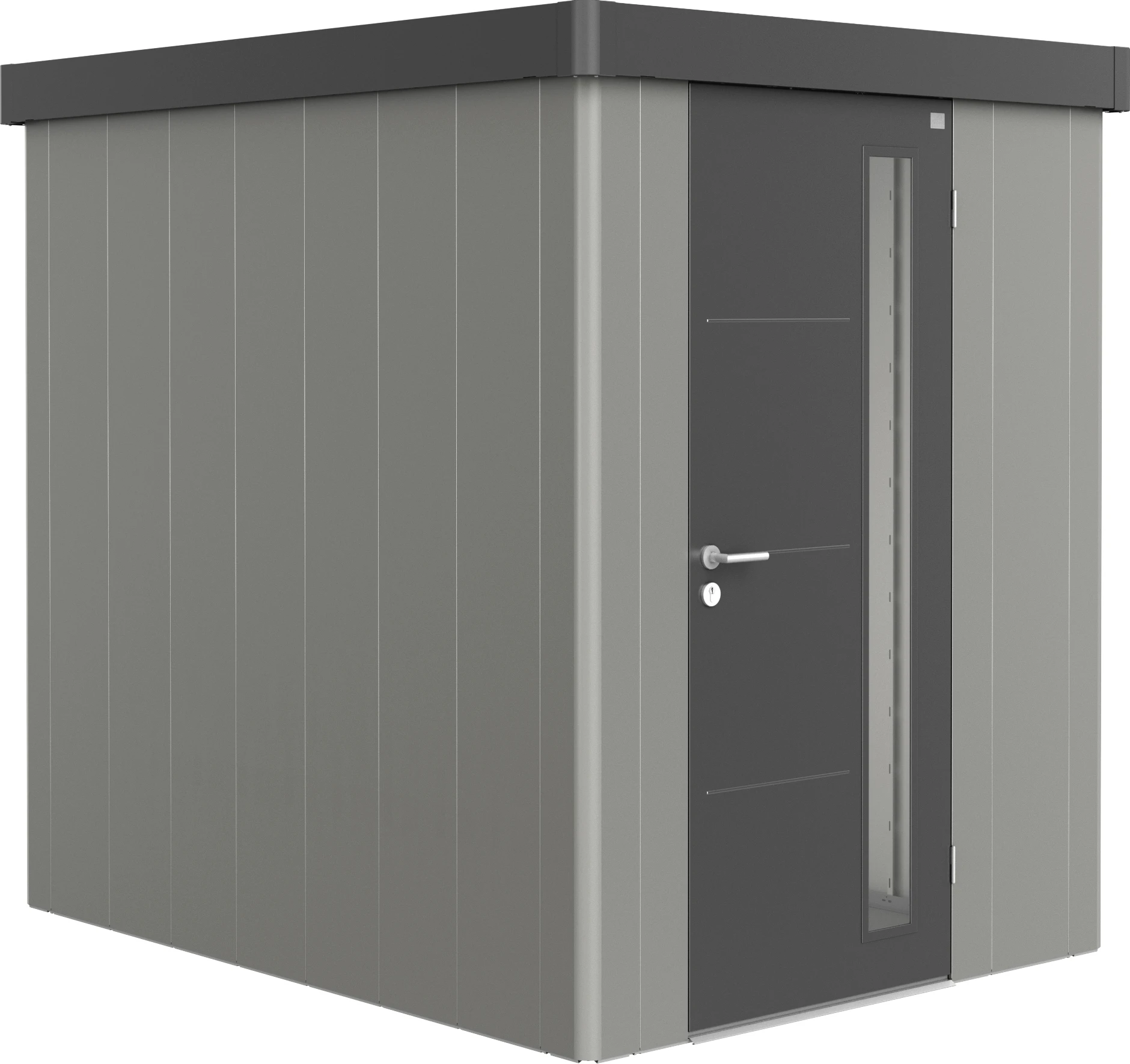 - Farbe: Wand quarzgrau-metallic, Dach und Tür dunkelgrau-metallic