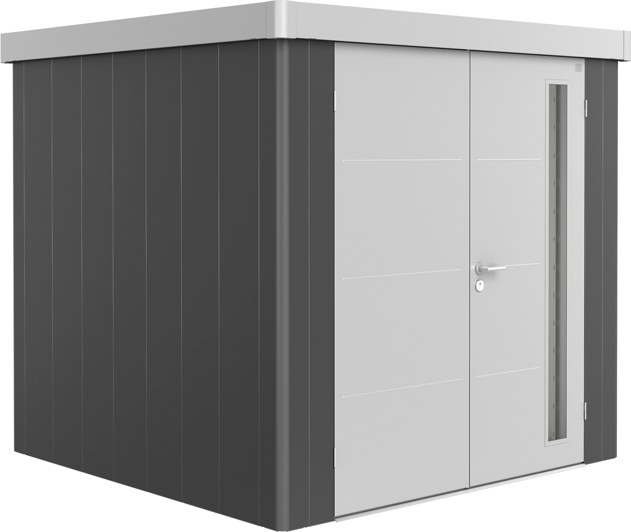 - Farbe: Wand dunkelgrau-metallic, Dach und Tür silber-metallic