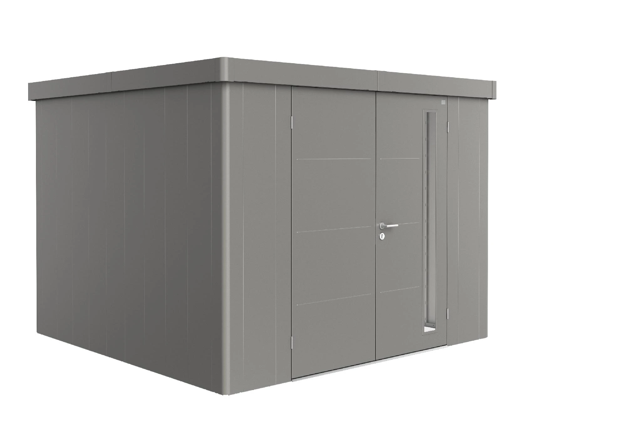 - inkl. Lichtelement in der Standardtür, Holzuntersicht und Dachaufbau, 2 Regenfallrohre, 2 Regalböden, 2 Gerätehalter und 2 Werkzeughalter