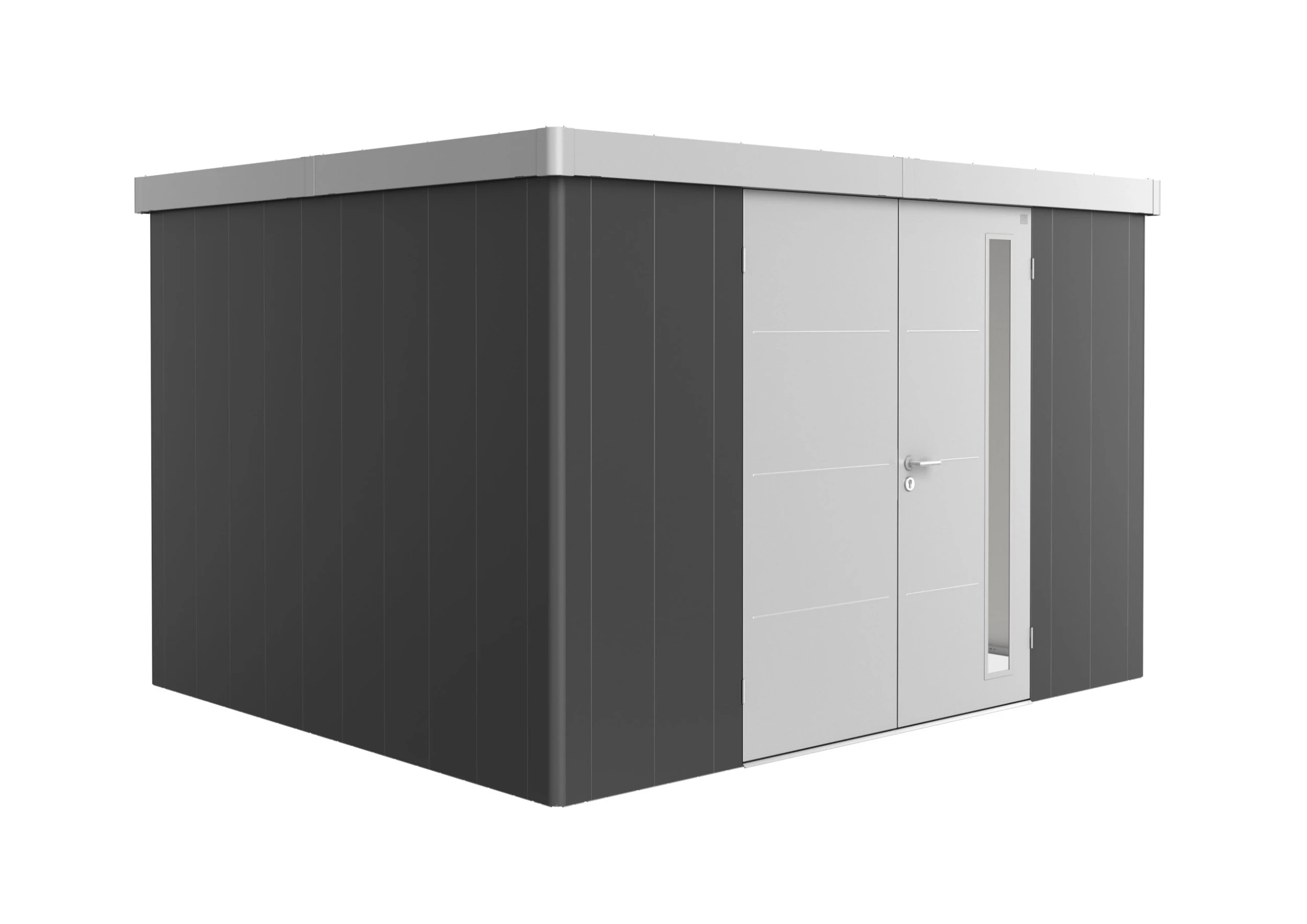 - Farbe: Wandfarbe: dunkelgrau-metallic, Tür- und Dachfarbe: silber-metallic