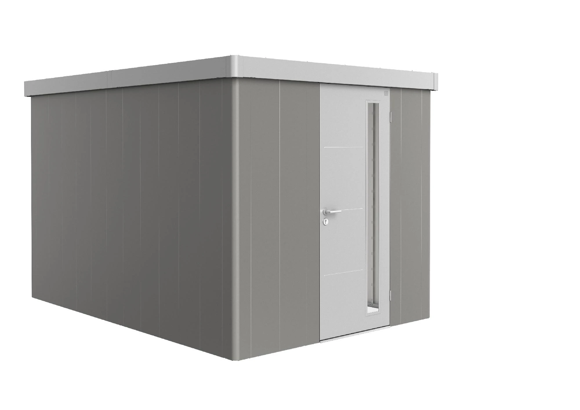 - Farbe: Wandfarbe: quarzgrau-metallic, Tür- und Dachfarbe: silber-metallic