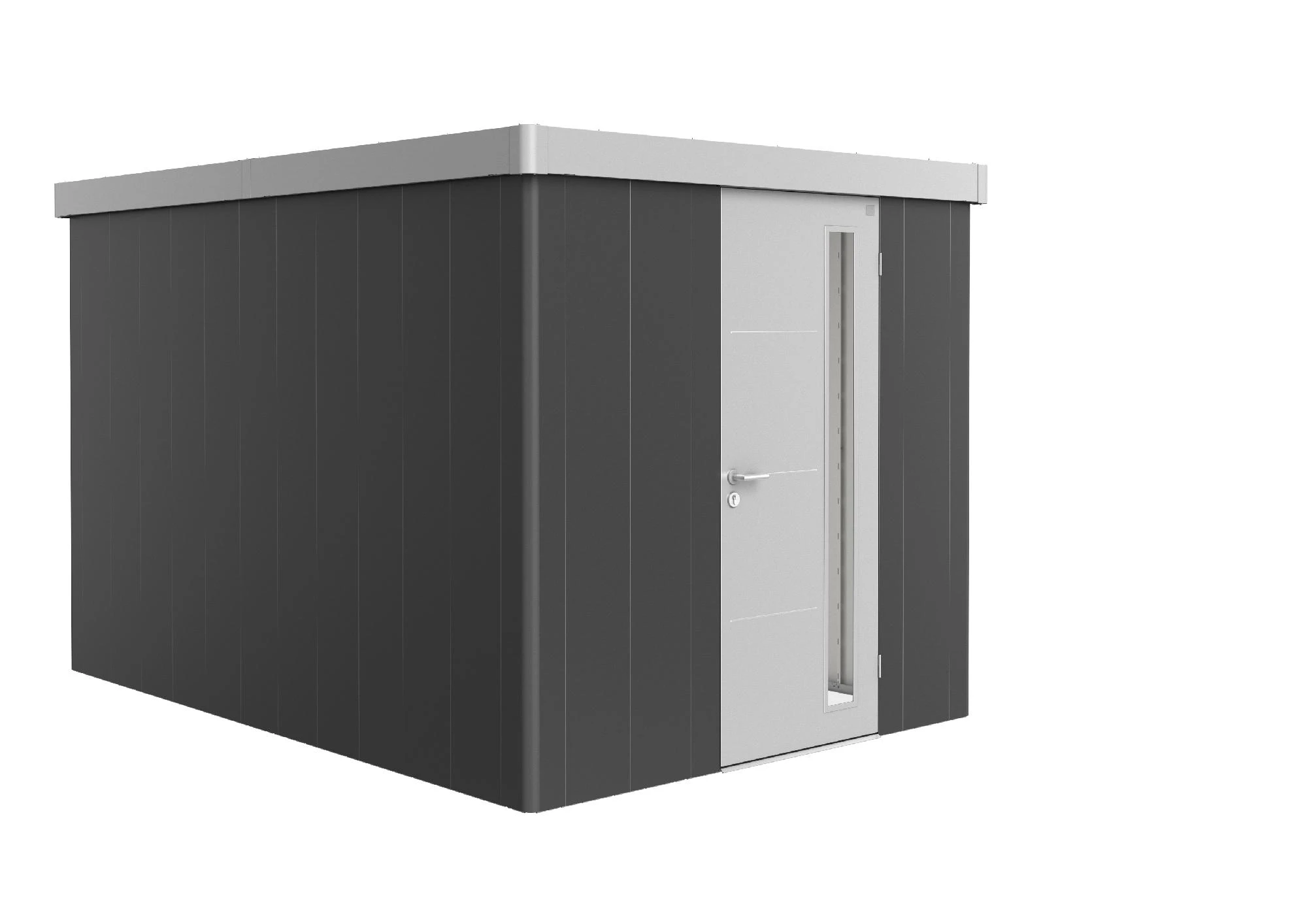 - Farbe: Wandfarbe: dunkelgrau-metallic, Tür- und Dachfarbe: silber-metallic