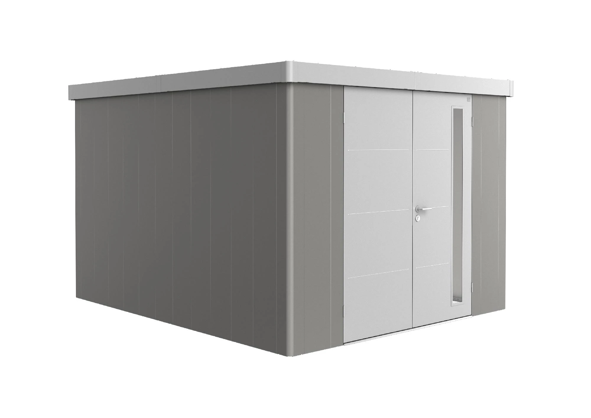 - Farbe: Wandfarbe: quarzgrau-metallic, Tür- und Dachfarbe: silber-metallic