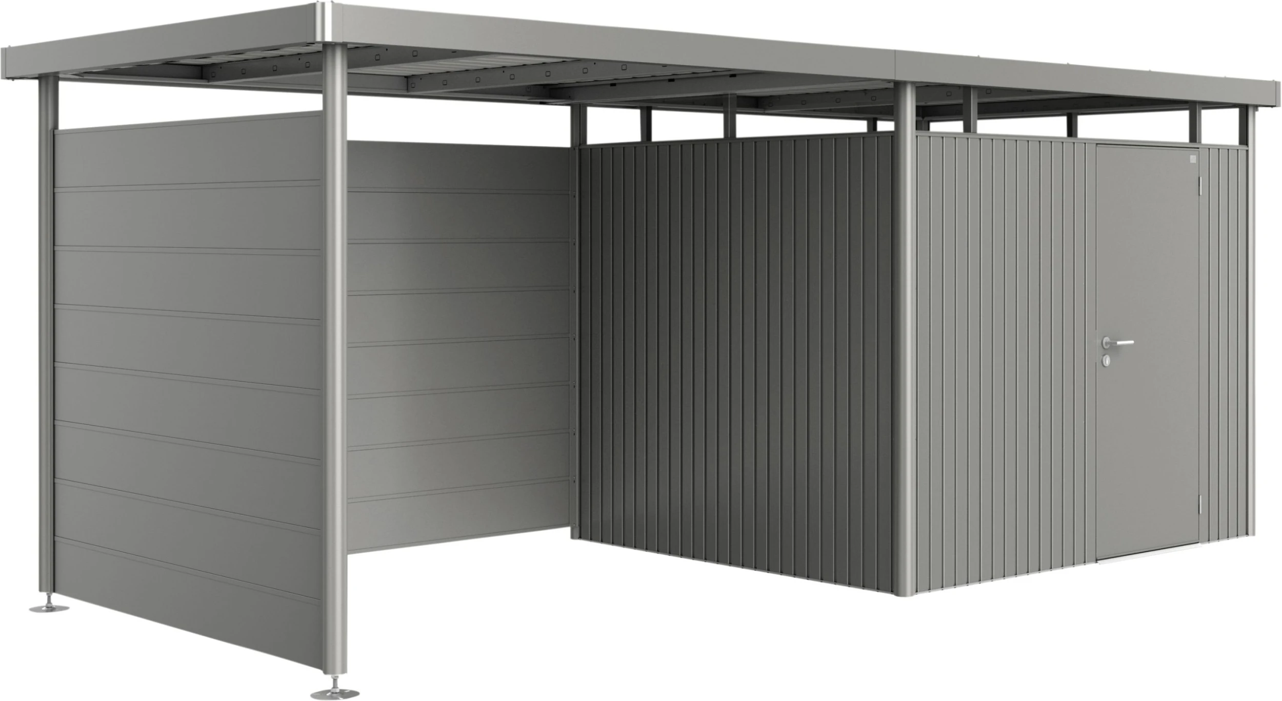 Wahlweise werden eine Rückwand und/oder eine Seitenwand am Seitendach des Gerätehauses HighLine (ab Gr. H2) angebracht. Sie sind in den Farbe des Hauses erhältlich.