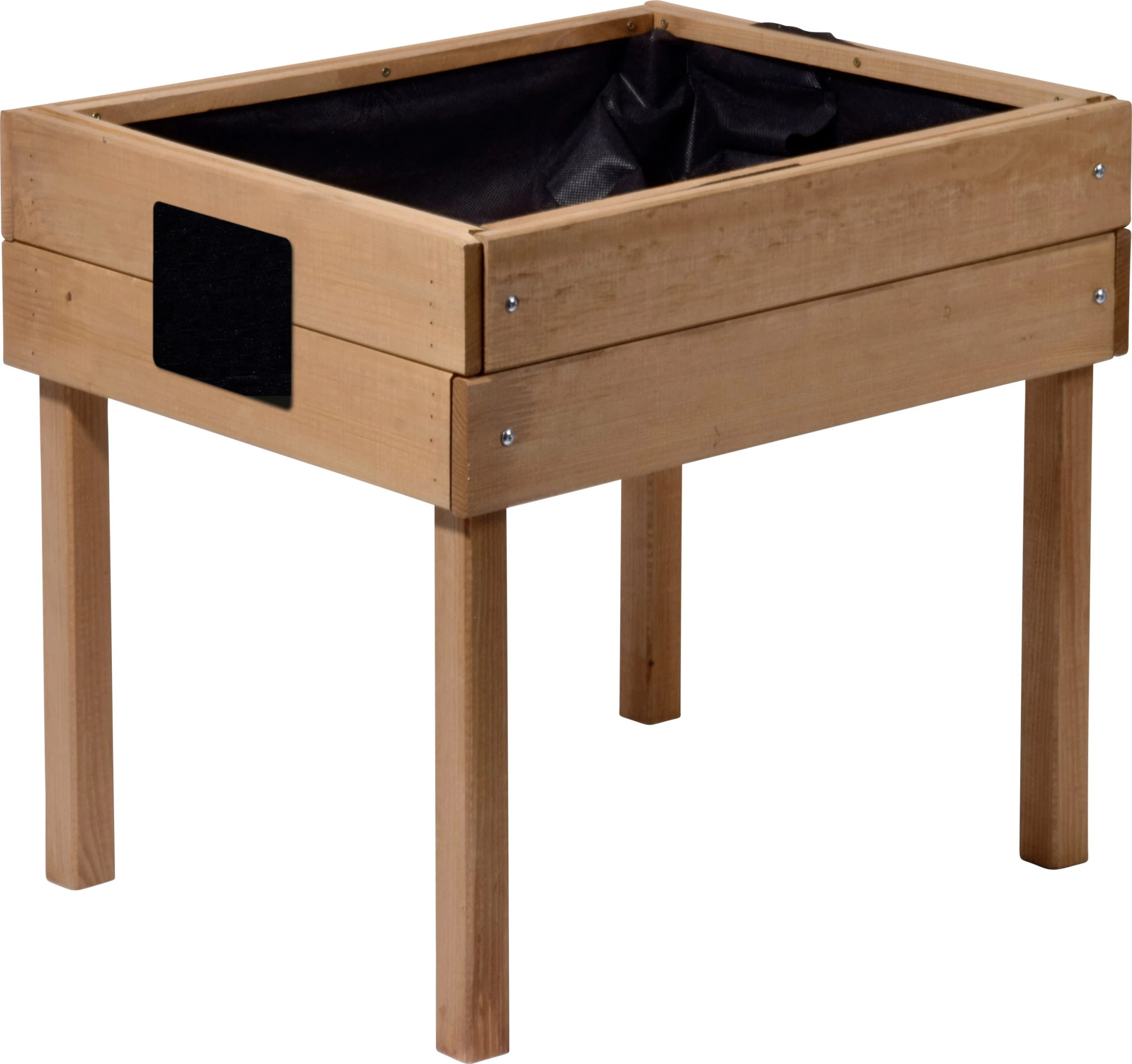 Dieses hochwertige Mini-Hochbeet für Kinder ist der Beweis, dass auch ein kleiner Garten große Freude bereiten kann. Der kleine Pflanzkasten hat eine Höhe von ca. 45 cm und ist so auch für kleine Gärtnerinnen und Gärtner gut erreichbar. Durch die Möglichkeit, das erste Mal eigene Blumen und Pflanzen aufzuziehen, bietet das Kinder-Hochbeet einen hohen pädagogischen Wert. Die kleine Kreidetafel an der Vorderseite kann zudem individuell beschriftet werden und lädt zur kreativen Gestaltung ein. Dank der geringen Größe ist es auch als Kräuter- und Gemüsebeet auf kleinen Balkons geeignet. Die mitgelieferte Pflanzfolie ermöglicht darüber hinaus die einfache und unkomplizierte Begrünung des Beets. Das Hochbeet ist wetterfest lasiert und besteht aus FSC®-zertifiziertem Kiefernholz aus umweltfreundlicher und nachhaltiger europäischer Forstwirtschaft. Die Herstellung in europäischer Produktion erfolgt in Handarbeit mit Fokus auf bester Qualität in der Verarbeitung. Die Außenmaße sind ca. 50 x 40 x 45 cm.