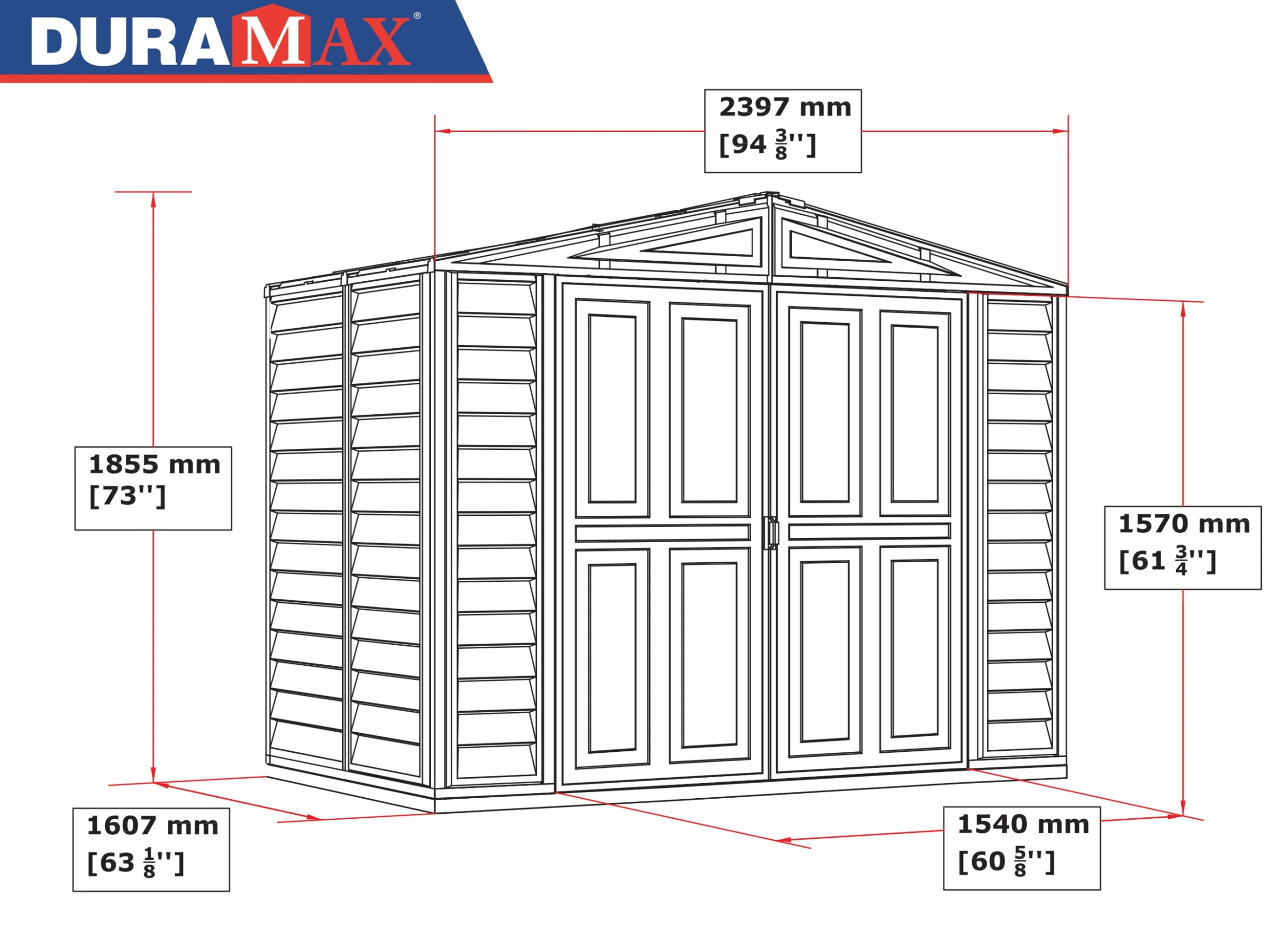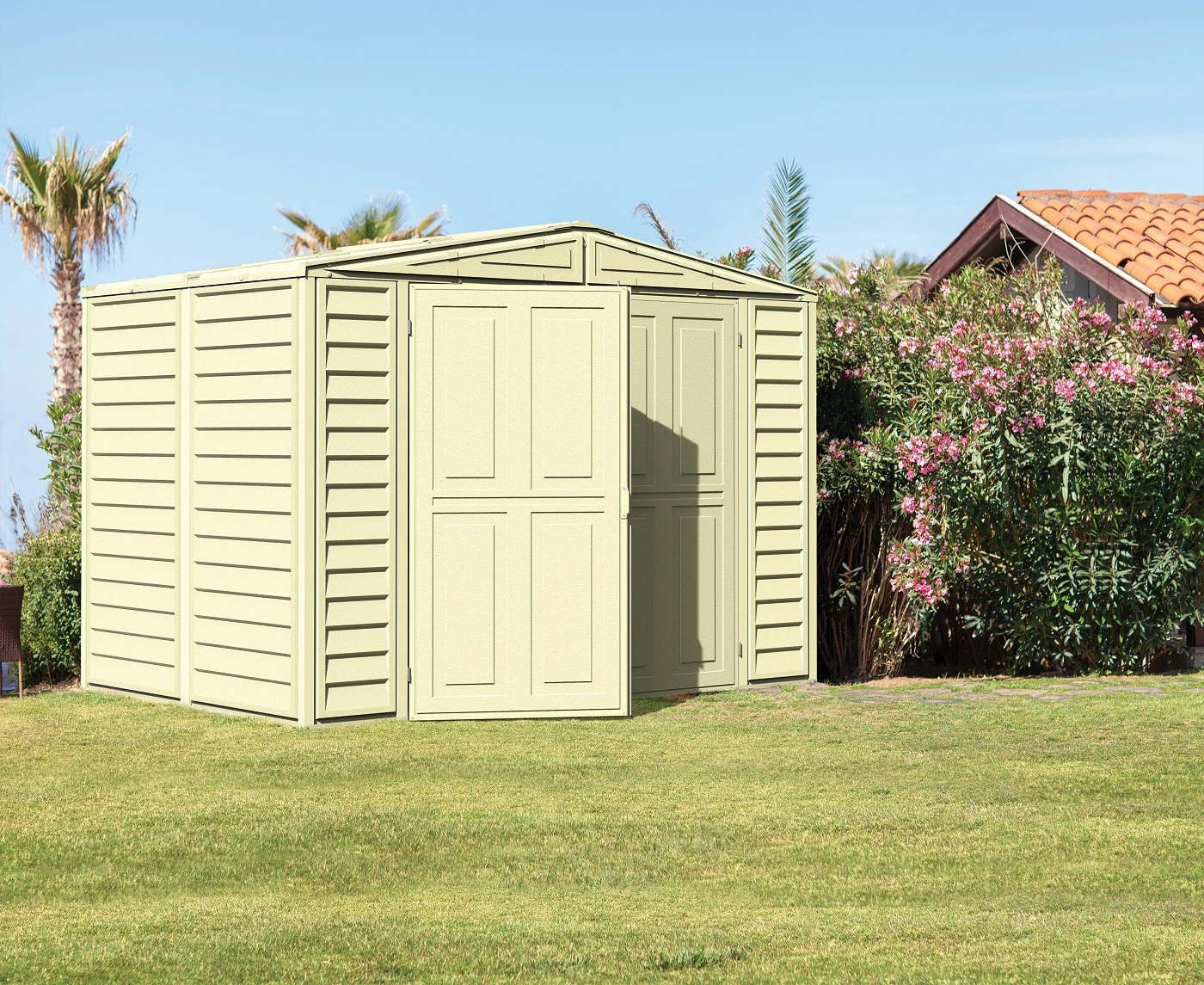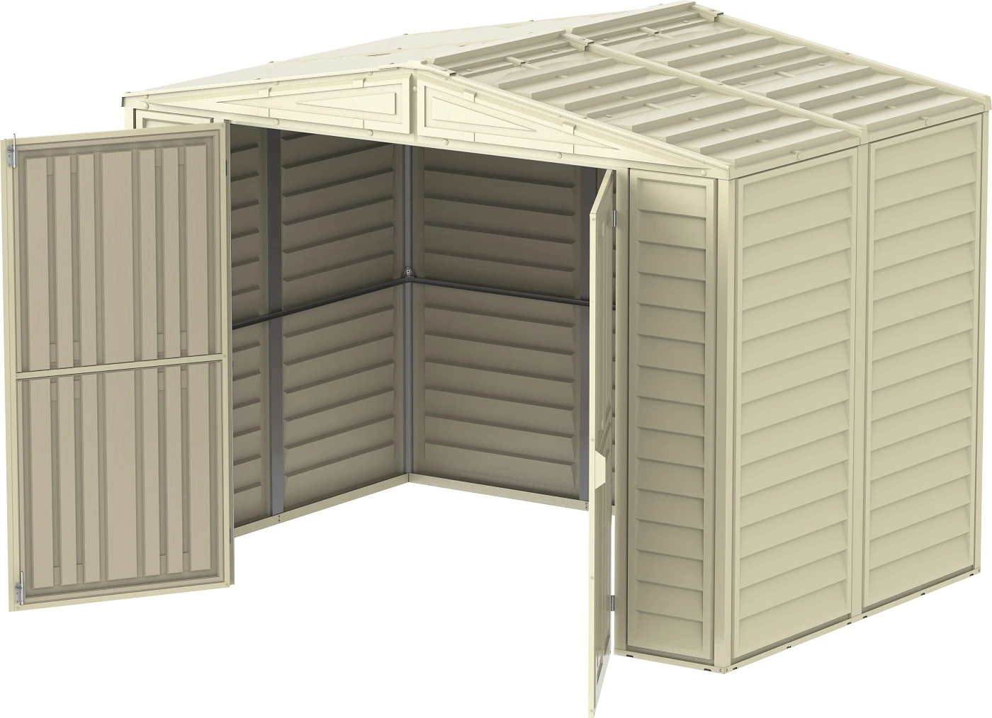 Die Kunststoffgerätehäuser Duramax gelten als eine preisgünstige Lösung für die Aufbewahrung von Gegenständen, die man in jedem Garten benötigt: Gartenmöbel, Rasenmäher und -Trimmer, Spielsachen und Sportbedarf, Grills und Grillutensilien oder Brennholz. Die Kunststoffgerätehäuser Duramax werden aus wartungsfreiem Vinyl hergestellt und ihre Konstruktion ist mit Stahlprofilen, die maximale Stabilität gewährleisten, verstrebt. Jedes Gartenhaus wird samt Bodenkonstruktion geliefert. Für ein bequemes betreten der Kunststoffgerätehäuser Duramax sorgen breite ein- oder zweiflügelige Türen. Falls Sie maximalen Raum, maximale Nutzungsdauer und maximale Stabilität benötigen, entscheiden Sie sich für eines der Kunststoffgerätehäuser Duramax.