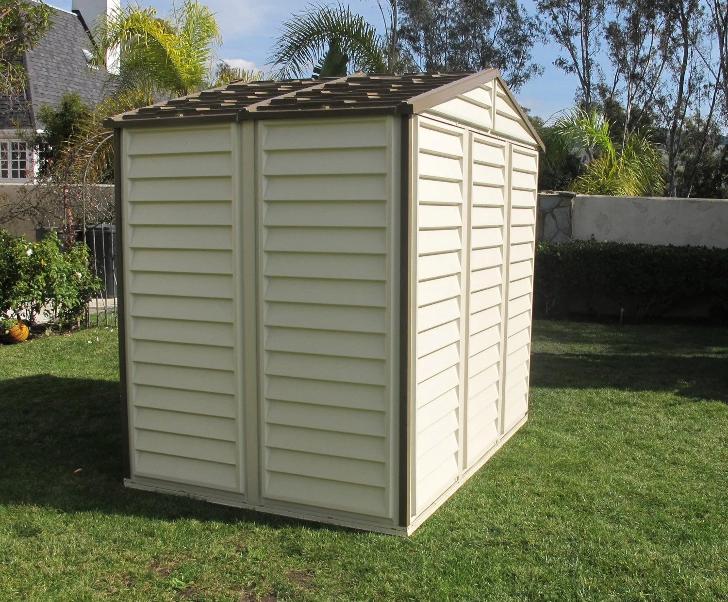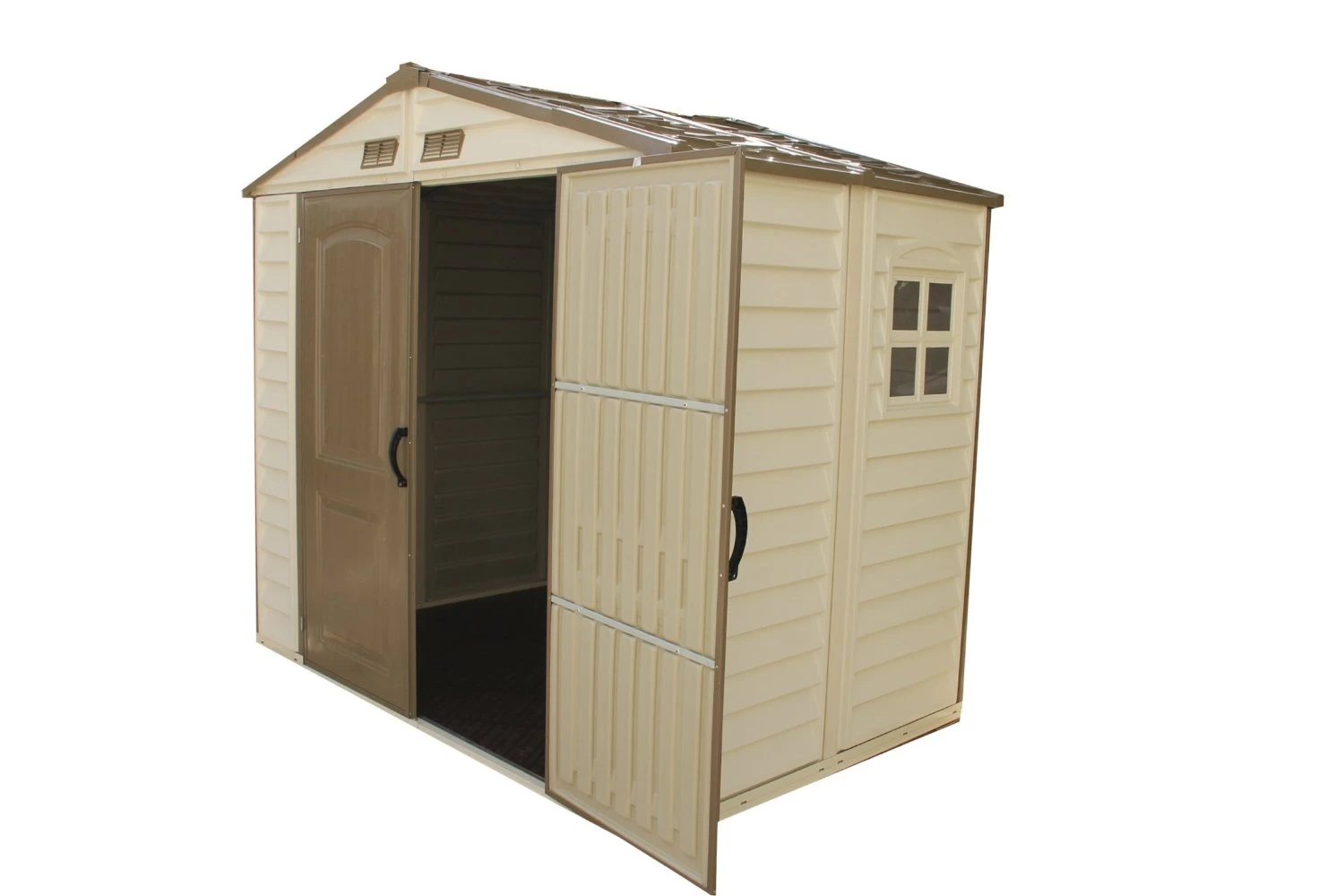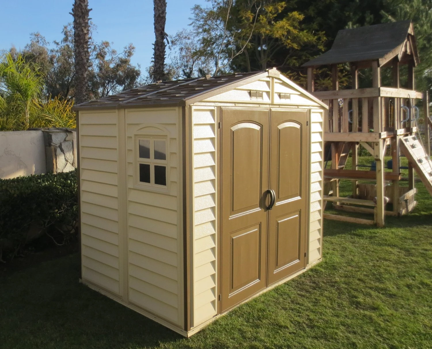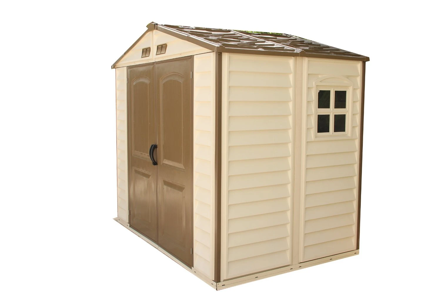 Die Kunststoffgerätehäuser Duramax gelten als eine preisgünstige Lösung für die Aufbewahrung von Gegenständen, die man in jedem Garten benötigt: Gartenmöbel, Rasenmäher und -Trimmer, Spielsachen und Sportbedarf, Grills und Grillutensilien oder Brennholz. Die Kunststoffgerätehäuser Duramax werden aus wartungsfreiem Vinyl hergestellt und ihre Konstruktion ist mit Stahlprofilen, die maximale Stabilität gewährleisten, verstrebt. Jedes Gartenhaus wird samt Bodenkonstruktion geliefert. Für ein bequemes betreten der Kunststoffgerätehäuser Duramax sorgen breite ein- oder zweiflügelige Türen. Falls Sie maximalen Raum, maximale Nutzungsdauer und maximale Stabilität benötigen, entscheiden Sie sich für eines der Kunststoffgerätehäuser Duramax.