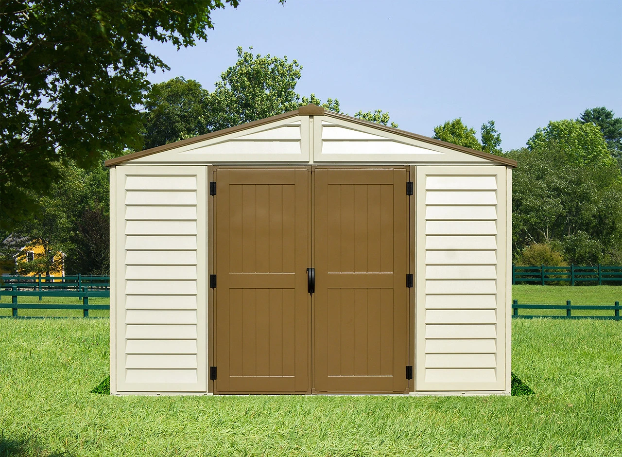 Die Kunststoffgerätehäuser Duramax gelten als eine preisgünstige Lösung für die Aufbewahrung von Gegenständen, die man in jedem Garten benötigt: Gartenmöbel, Rasenmäher und -Trimmer, Spielsachen und Sportbedarf, Grills und Grillutensilien oder Brennholz. Die Kunststoffgerätehäuser Duramax werden aus wartungsfreiem Vinyl hergestellt und ihre Konstruktion ist mit Stahlprofilen, die maximale Stabilität gewährleisten, verstrebt. Jedes Gartenhaus wird samt Bodenkonstruktion geliefert. Für ein bequemes betreten der Kunststoffgerätehäuser Duramax sorgen breite ein- oder zweiflügelige Türen. Falls Sie maximalen Raum, maximale Nutzungsdauer und maximale Stabilität benötigen, entscheiden Sie sich für eines der Kunststoffgerätehäuser Duramax.
