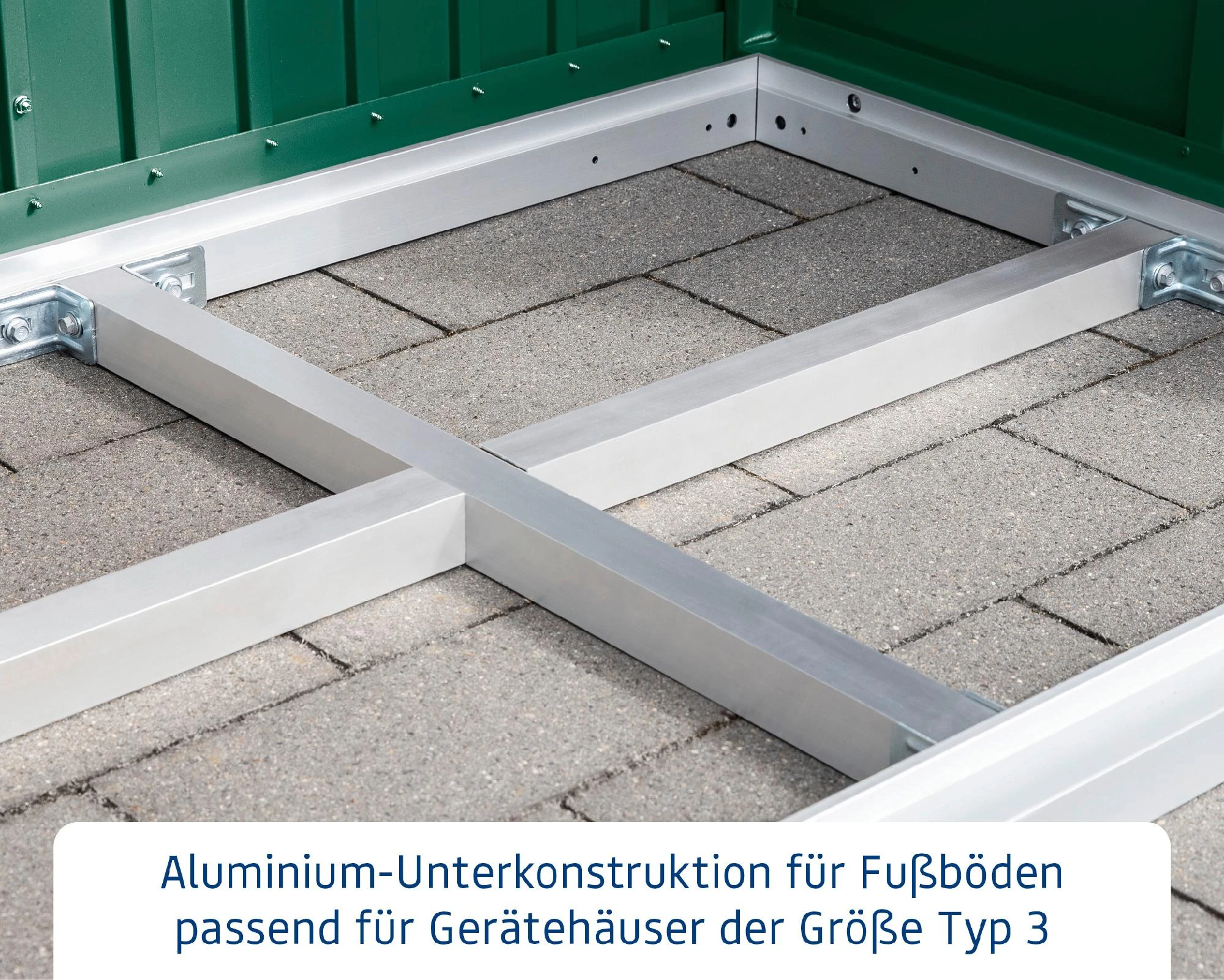 Um die optimale Belastbarkeit des EcoStar Riffelblech-Bodens zu gewährleisten, sollten Sie diesen mit der passenden Unterkonstruktion kombinieren. Die Anbringung der Konstruktion ist sehr einfach und sorgt für eine tragfähige, belastbare Bodenfläche in Ihrem EcoStar Gerätehaus.