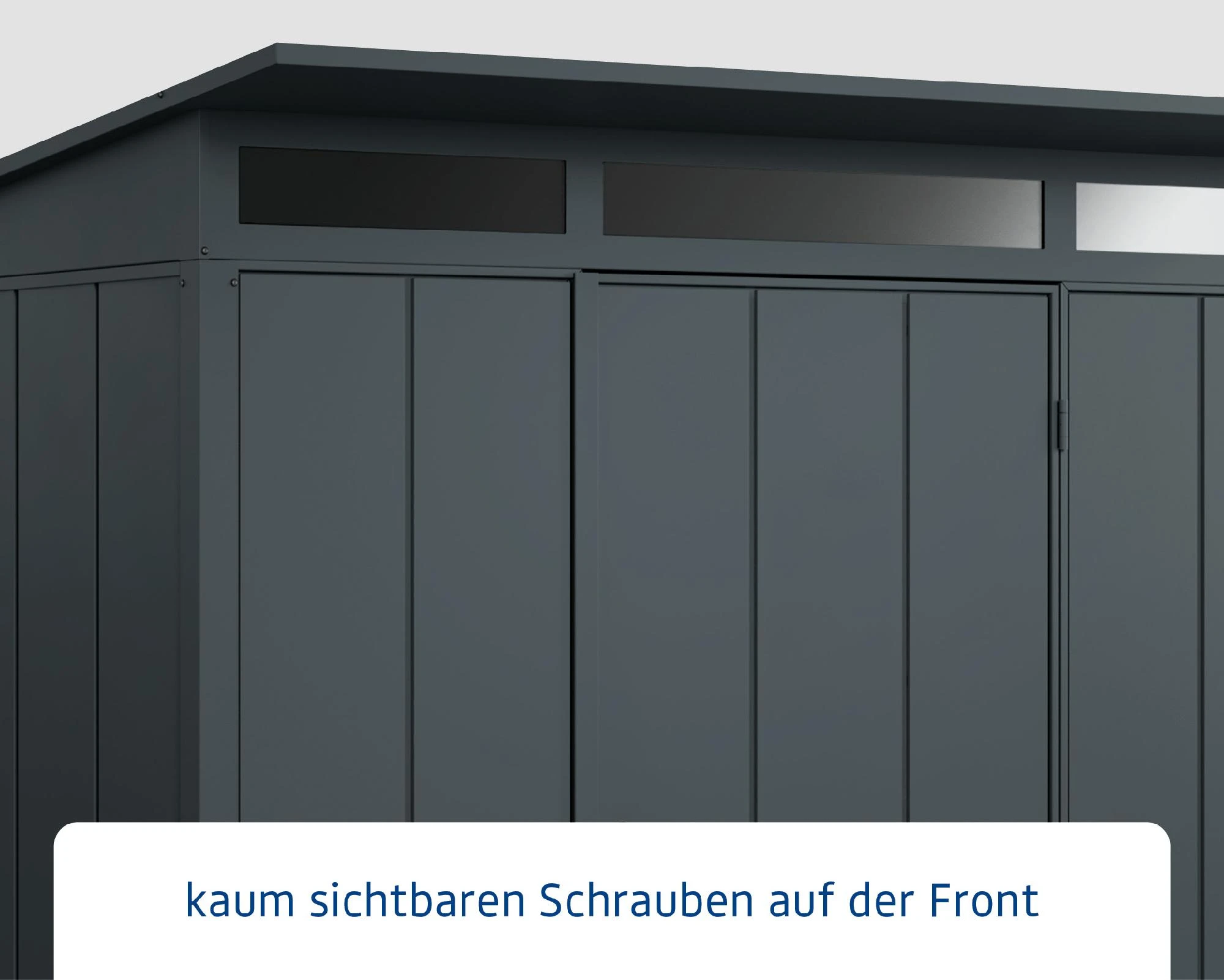 - Außenmaße inkl. Dachvorsprung (BxTxH): 312,7 x 283,4 x 232,3 cm