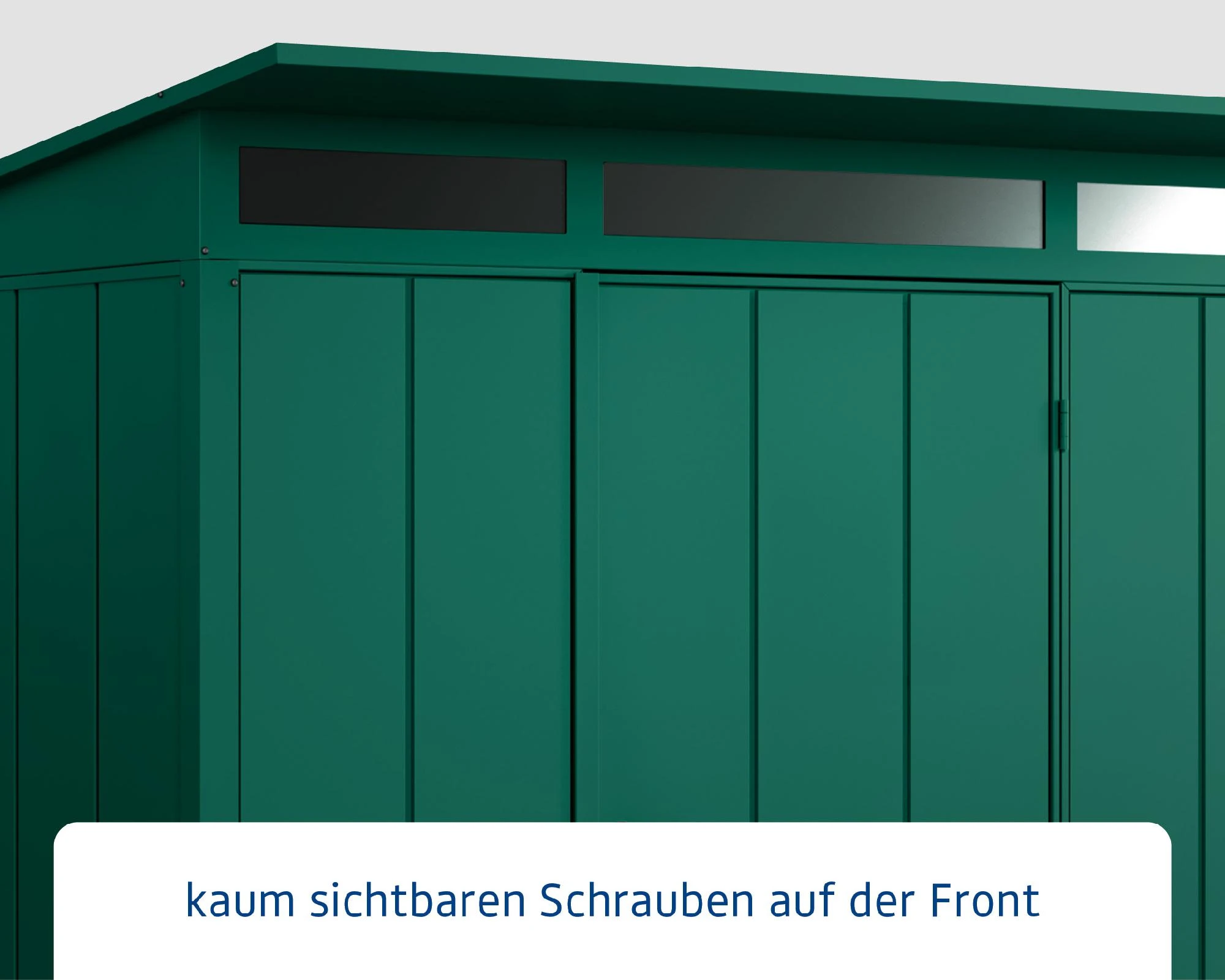 EcoStar Gerätehäuser mit Pultdach sind in zwei unterschiedlichen Motiven und einer Vielzahl von Ausführungen erhältlich. Alle Häuser bieten komfortable Lösungen mit cleverem Stauraum in verschiedenen Größen und Farben. Im Zusammenspiel mit dem funktionalen und praktischen Zubehör findet sich für alles der optimale Platz. Die Häuser werden in einem maximalen Vorfertigungsgrad angeliefert. Der stabilisierende Alu-Bodenrahmen ist bereits im Preis enthalten. Aufbau und Montage gestalten sich damit einfach, schnell und unkompliziert. EcoStar Gerätehäuser ELEGANT Pultdach sorgen mit ihrem breiten Motiv für einen modernen und ansprechenden Look. Langlebige und qualitativ hochwertige Materialien gewährleisten dabei eine sehr gepflegte Optik. Oberlichter sorgen für angenehmes Licht im Inneren und der Dachvorsprung schützt bei Regen. In drei unterschiedlichen Größen bieten diese Gerätehäuser viele Zubehöroptionen und ausreichend Stauraum für alles, was den Garten und die Freizeit lebenswert macht. Von Gartengeräten bis zum Fahrrad – alles ist sicher verstaut, dank zuverlässiger Schlösser und Bänder. Mit den Gerätehäusern von EcoStar schaffen Sie einen schönen Platz für Ordnung in Ihrem Garten