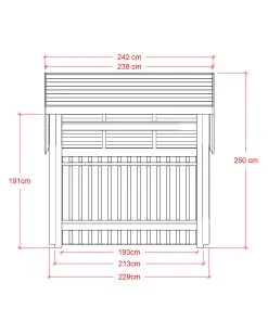 - Außenmaße inkl. Dachvorsprung (BxTxH): 247,9 x 153 x 228,6 cm