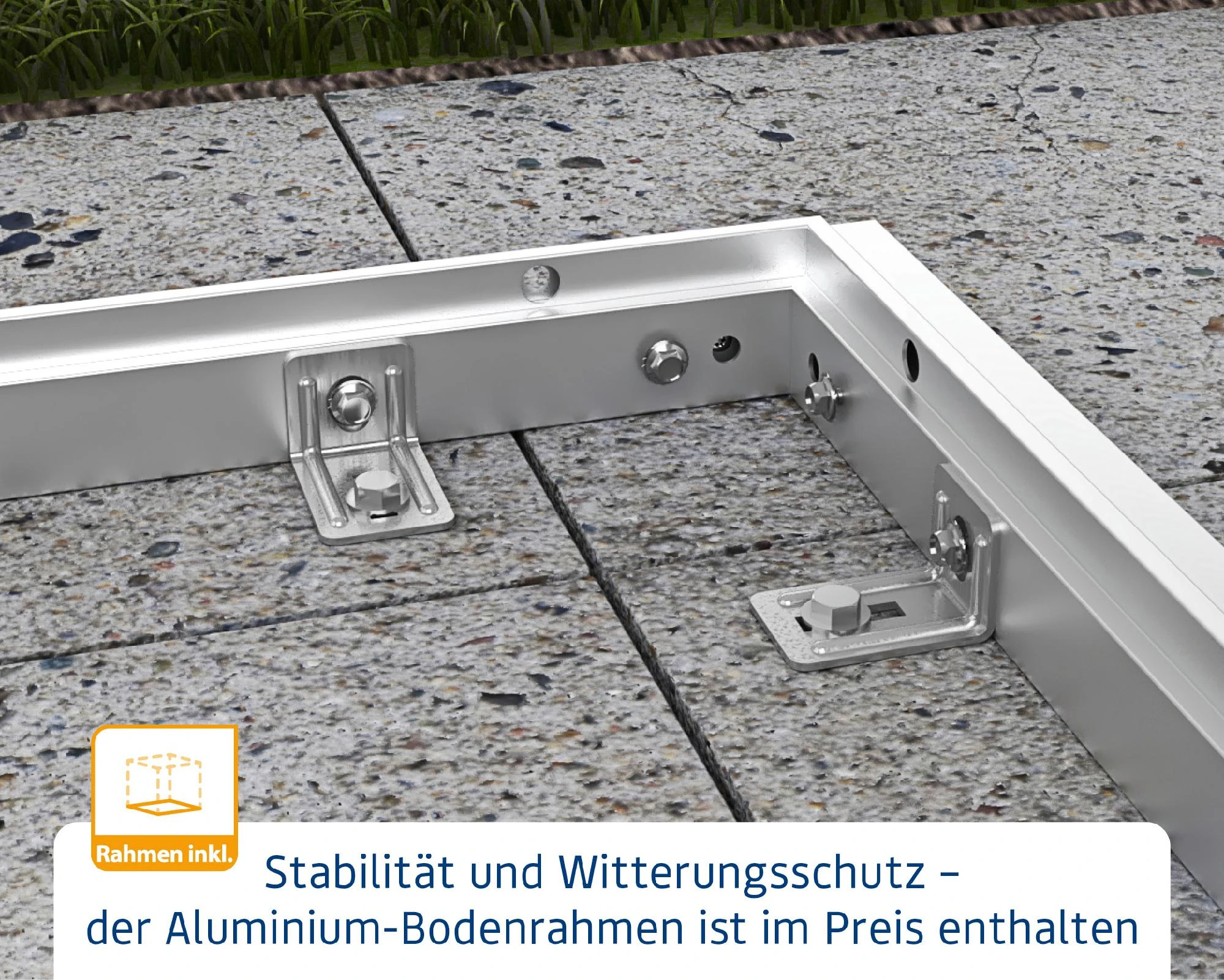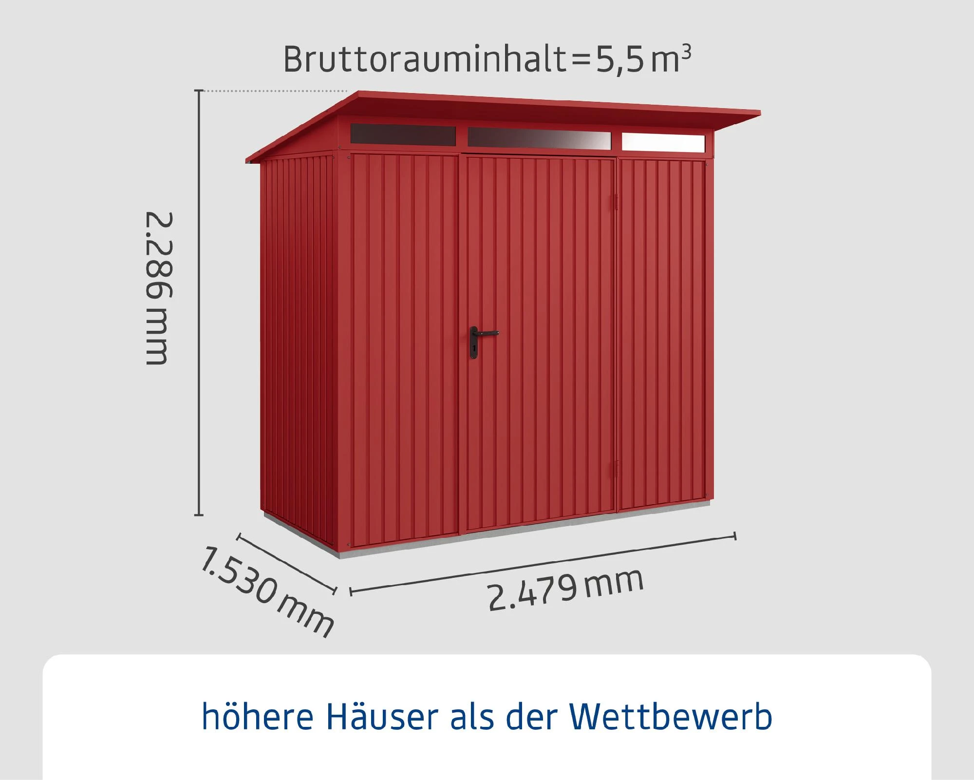 - Außenmaße inkl. Dachvorsprung (BxTxH): 247,9 x 153 x 228,6 cm