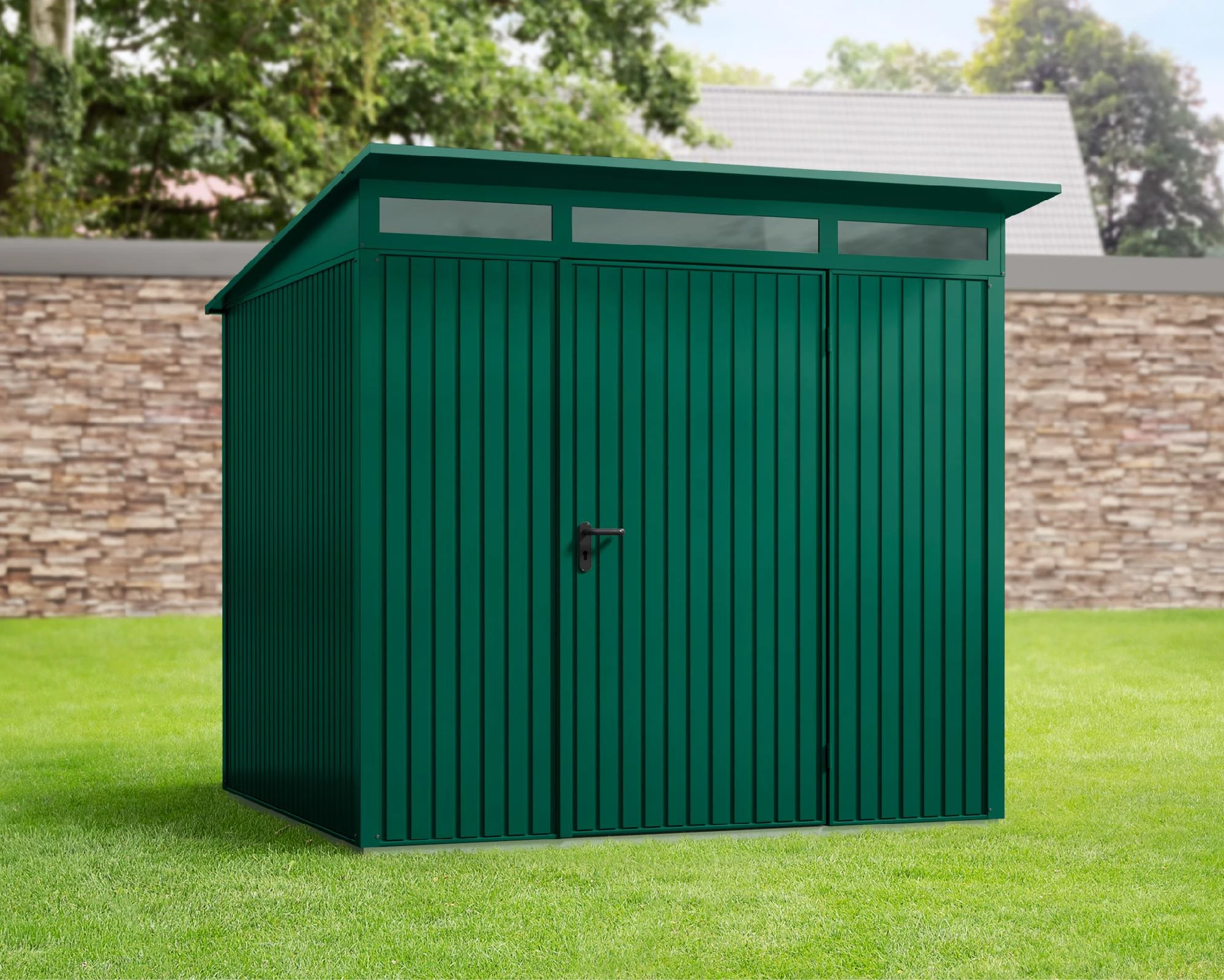 EcoStar Gerätehäuser mit Pultdach sind in zwei unterschiedlichen Motiven und einer Vielzahl von Ausführungen erhältlich. Alle Häuser bieten komfortable Lösungen mit cleverem Stauraum in verschiedenen Größen und Farben. Im Zusammenspiel mit dem funktionalen und praktischen Zubehör findet sich für alles der optimale Platz. Die Häuser werden in einem maximalen Vorfertigungsgrad angeliefert. Der stabilisierende Alu-Bodenrahmen ist bereits im Preis enthalten. Aufbau und Montage gestalten sich damit einfach, schnell und unkompliziert.EcoStar Gerätehäuser TREND Pultdach bestechen mit schmalen, senkrechten Lamellen. Die sehr gleichmäßige, aufgeräumte Optik lässt sich hervorragend zu Fassaden, Haustüren und Garagenschwingtoren kombinieren. Oberlichter sorgen für angenehmes Licht im Inneren und der Dachvorsprung schützt bei Regen. Im Inneren findet sich ausreichend Platz für Gartengeräte, Werkzeuge oder Spielzeuge und dank der zuverlässigen Schlösser und Bänder auch für E-Bikes und Gartenmöbel. Mit den Gerätehäusern von EcoStar ziehen Stauraum und Ordnung in Ihren Garten.