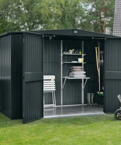 EcoStar Gerätehäuser mit Satteldach sind in zwei unterschiedlichen Motiven und einer Vielzahl von Ausführungen erhältlich. Alle Häuser bieten komfortable Lösungen mit cleverem Stauraum in verschiedenen Größen und Farben. Im Zusammenspiel mit dem funktionalen und praktischen Zubehör findet sich für alles der optimale Platz. Die Häuser werden in einem maximalen Vorfertigungsgrad angeliefert. Der stabilisierende Alu-Bodenrahmen ist bereits im Preis enthalten. Aufbau und Montage gestalten sich damit einfach, schnell und unkompliziert. EcoStar Gerätehäuser TREND Satteldach bestechen mit schmalen, senkrechten Lamellen. Die sehr gleichmäßige, aufgeräumte Optik lässt sich hervorragend zu Fassaden, Haustüren und Garagenschwingtoren kombinieren. Im Inneren findet sich ausreichend Platz für Gartengeräte, Werkzeuge oder Spielzeuge und dank der zuverlässigen Schlösser und Bänder auch für E-Bikes und Gartenmöbel. Mit den Gerätehäusern von EcoStar ziehen Stauraum und Ordnung in Ihren Garten.