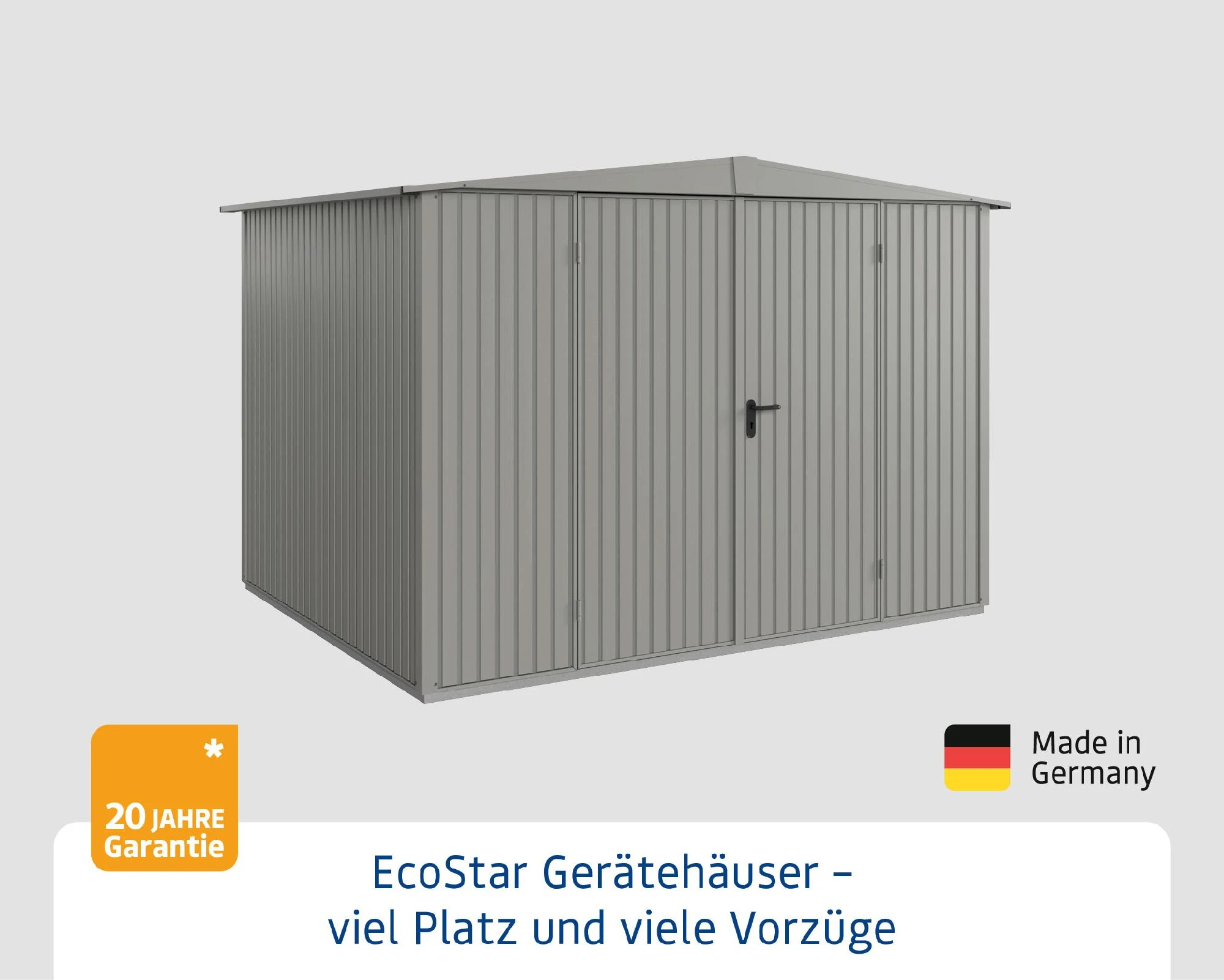 EcoStar Gerätehäuser mit Satteldach sind in zwei unterschiedlichen Motiven und einer Vielzahl von Ausführungen erhältlich. Alle Häuser bieten komfortable Lösungen mit cleverem Stauraum in verschiedenen Größen und Farben. Im Zusammenspiel mit dem funktionalen und praktischen Zubehör findet sich für alles der optimale Platz. Die Häuser werden in einem maximalen Vorfertigungsgrad angeliefert. Der stabilisierende Alu-Bodenrahmen ist bereits im Preis enthalten. Aufbau und Montage gestalten sich damit einfach, schnell und unkompliziert. EcoStar Gerätehäuser TREND Satteldach bestechen mit schmalen, senkrechten Lamellen. Die sehr gleichmäßige, aufgeräumte Optik lässt sich hervorragend zu Fassaden, Haustüren und Garagenschwingtoren kombinieren. Im Inneren findet sich ausreichend Platz für Gartengeräte, Werkzeuge oder Spielzeuge und dank der zuverlässigen Schlösser und Bänder auch für E-Bikes und Gartenmöbel. Mit den Gerätehäusern von EcoStar ziehen Stauraum und Ordnung in Ihren Garten.