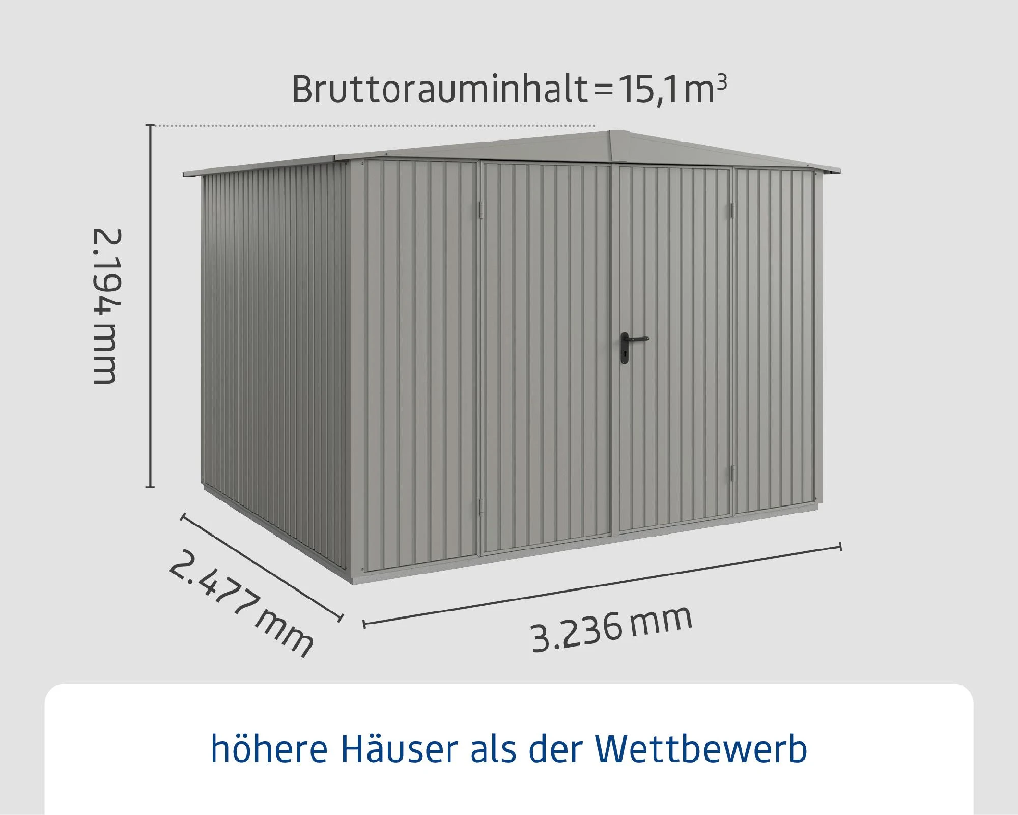 - Außenmaße inkl. Dachvorsprung (BxTxH): 323,6 x 247,7 x 219,4 cm