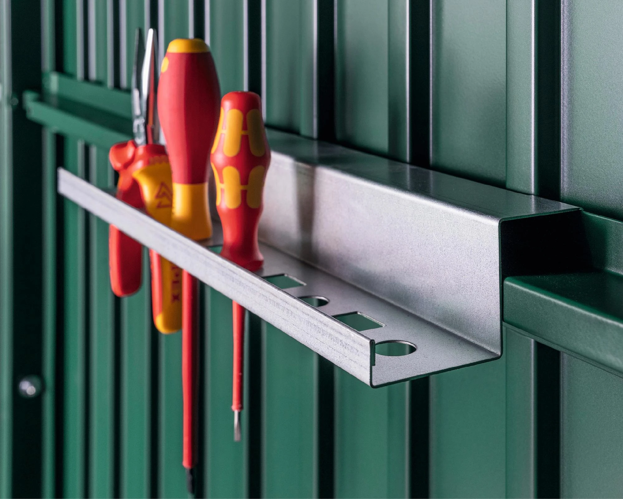 Wer für seine Schraubendreher, Zangen und Zollstöcke einen praktischen Aufbewahrungsort sucht, der ist mit dem EcoStar Werkzeughalter bestens aufgestellt. Die kompakte Konstruktion aus feuerverzinktem Stahlblech bietet stabilen Halt und eine stets griffbereite Ordnung aller wichtigen Gebrauchsgegenstände. Das benötigte Befestigungsmaterial ist im Lieferumfang enthalten.