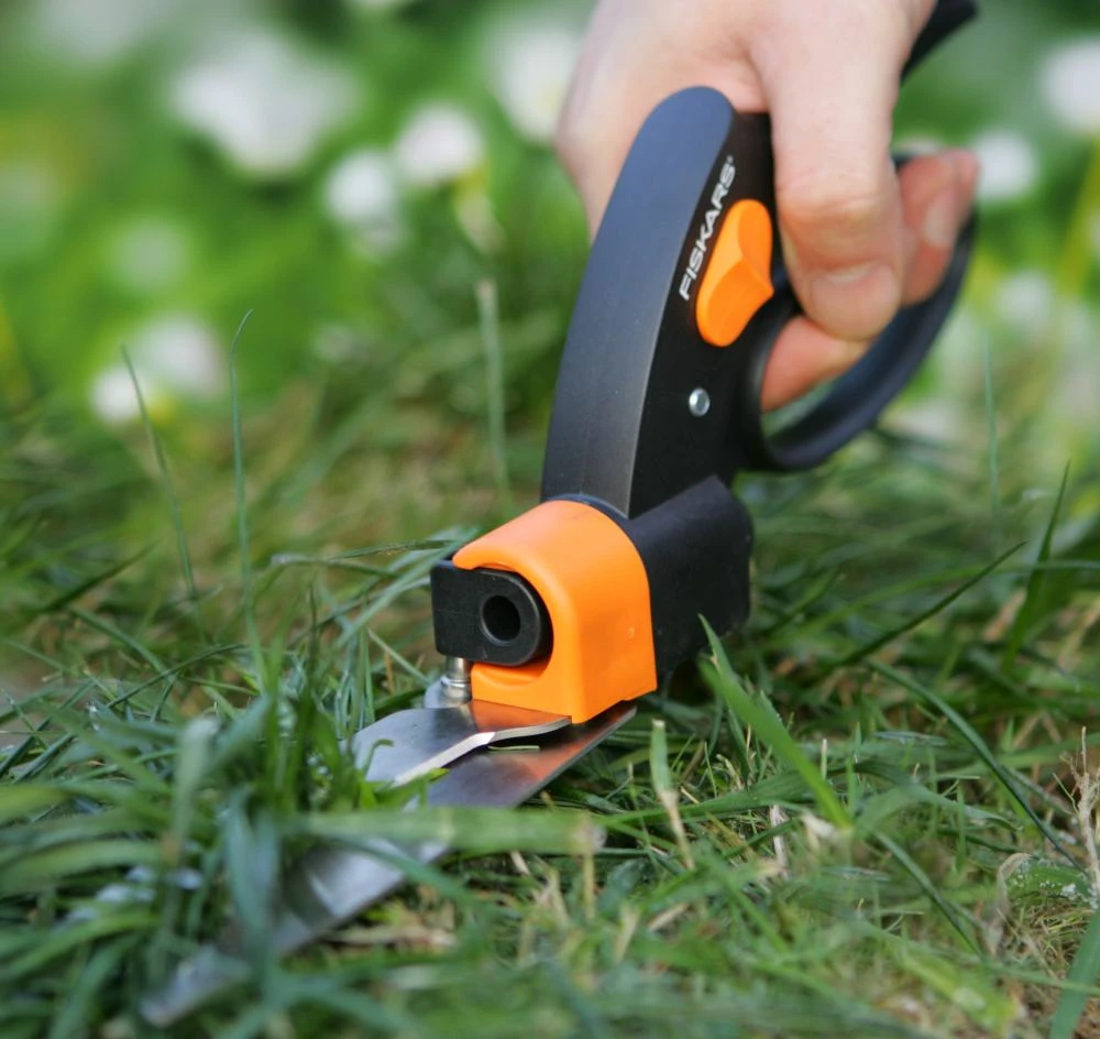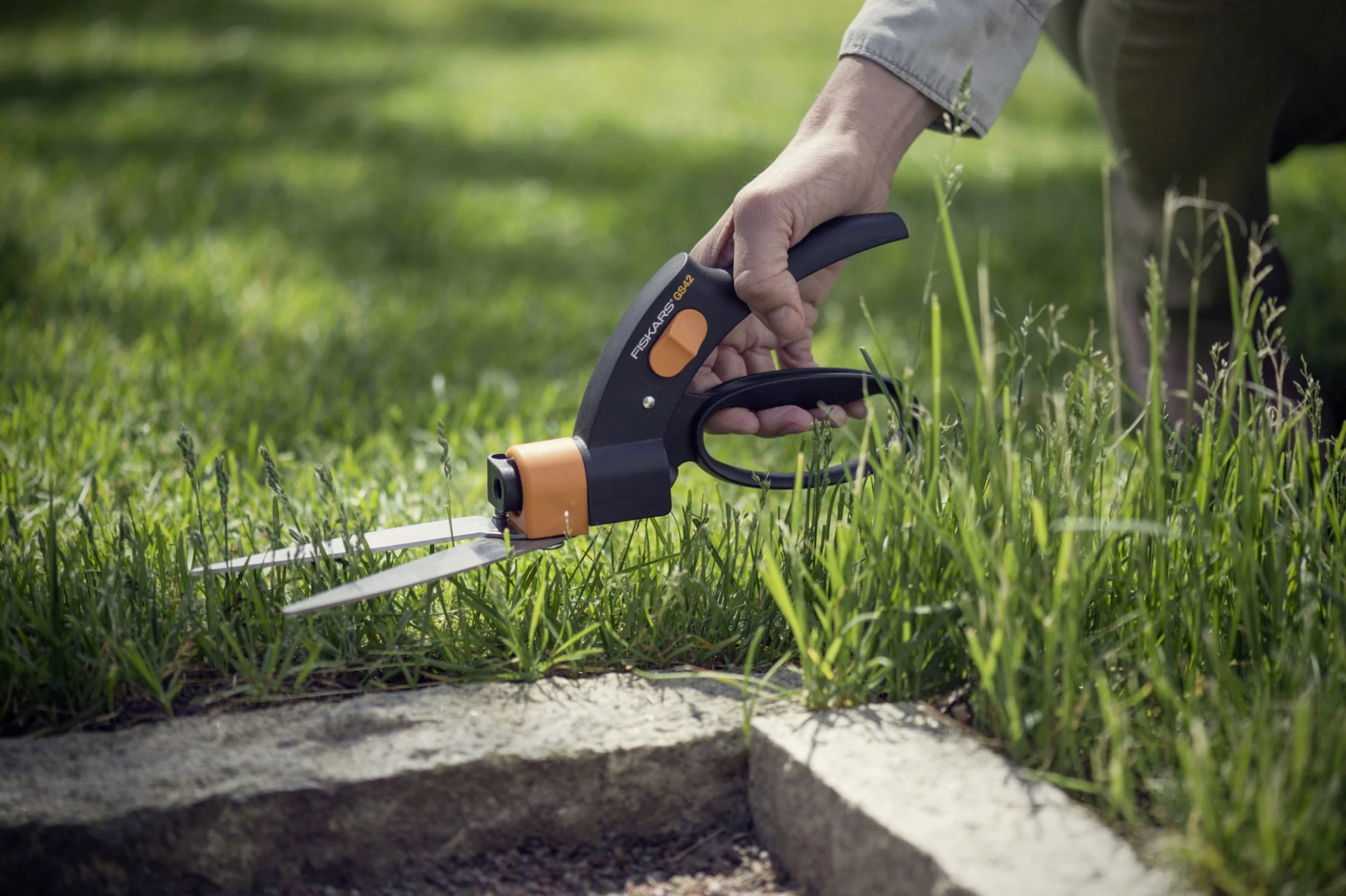 Diese Fiskars Grasschere bringt jeden Rasen in die ideale Form. Mit dem patentierten Servo-System gelingt der perfekte Schnitt, da die Klingen nicht verkleben. Dabei wird ein gleichmäßiges, effizientes Schneiden ermöglicht. Das ergonomische Design dieser Rasenkantenschere ermöglicht ein langes sowie ermüdungsfreies Arbeiten. Mit dieser Ausführung kann der Benutzer besonders gut in aufrechter Haltung den Rasen in Form bringen. Die Besonderheit dieses Modells ist der Schneidkopf. Dieser lässt sich flexibel einstellen und ist um 360 Grad drehbar. Seine beiden Klingen bestehen aus gehärtetem, rostfreiem Stahl und sind sehr stabil. Ebenso robust sind die Griffe sowie der Stiel, die aus glasfaserverstärktem Kunststoff hergestellt sind. Dieses Material macht sie besonders leicht, was wiederum ein Gewicht von gerade mal 654 Gramm ermöglicht. Das markentypische Design in Schwarz mit orangefarbenen Elementen wurde bereits mit dem Red Dot Design Award ausgezeichnet. Außerdem ist das Werkzeug mit dem Sicherheit Geprüft-Siegel ausgezeichnet. Perfekter Schnitt durch Servo-System