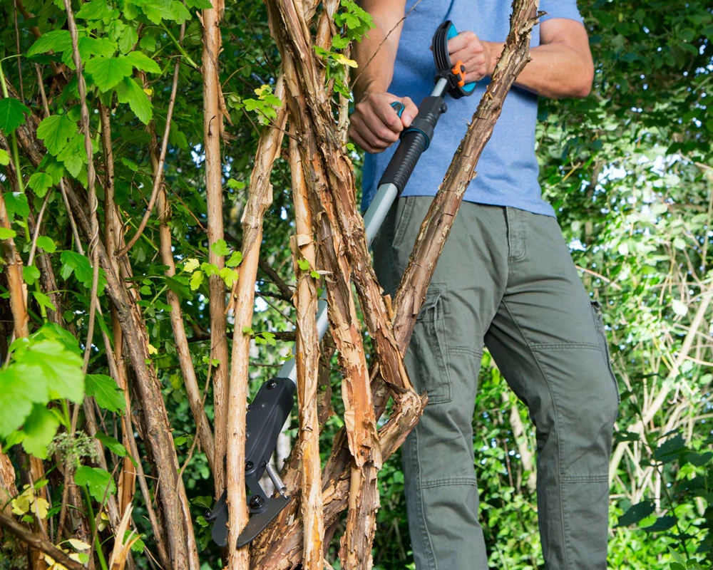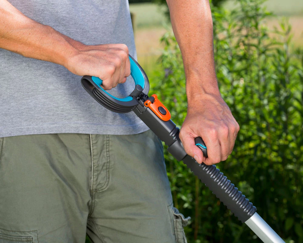 Die GARDENA Astschere SlimCut bietet durch den langen Aluminiumstiel eine enorme Reichweite, bestens geeignet zum Auslichten dichter Büsche und Sträucher. Das integrierte Getriebe sorgt für optimale Schneidkraft. Präzisionsgeschliffene Messer mit Antihaftbeschichtung gewährleisten einen pflanzenschonenden, exakten Schnitt. In zwei Positionen kann das Getriebe von einer 1:12 Übersetzung für dicke Äste, auf eine 1:6 Übersetzung für einen schnellen Schnitt bei dünnen Ästen umgestellt werden. Die SlimCut ist mit einem beweglichen und höhenverstellbaren Handgriff ausgestattet. Der Griff kann an die Körpergröße angepasst werden und ermöglicht so eine rückenschonende Arbeitshaltung.