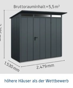 EcoStar Gerätehaus Elegant-P Typ 1 Anthrazitgrau 247,9 X 153 X 228,6 Cm
