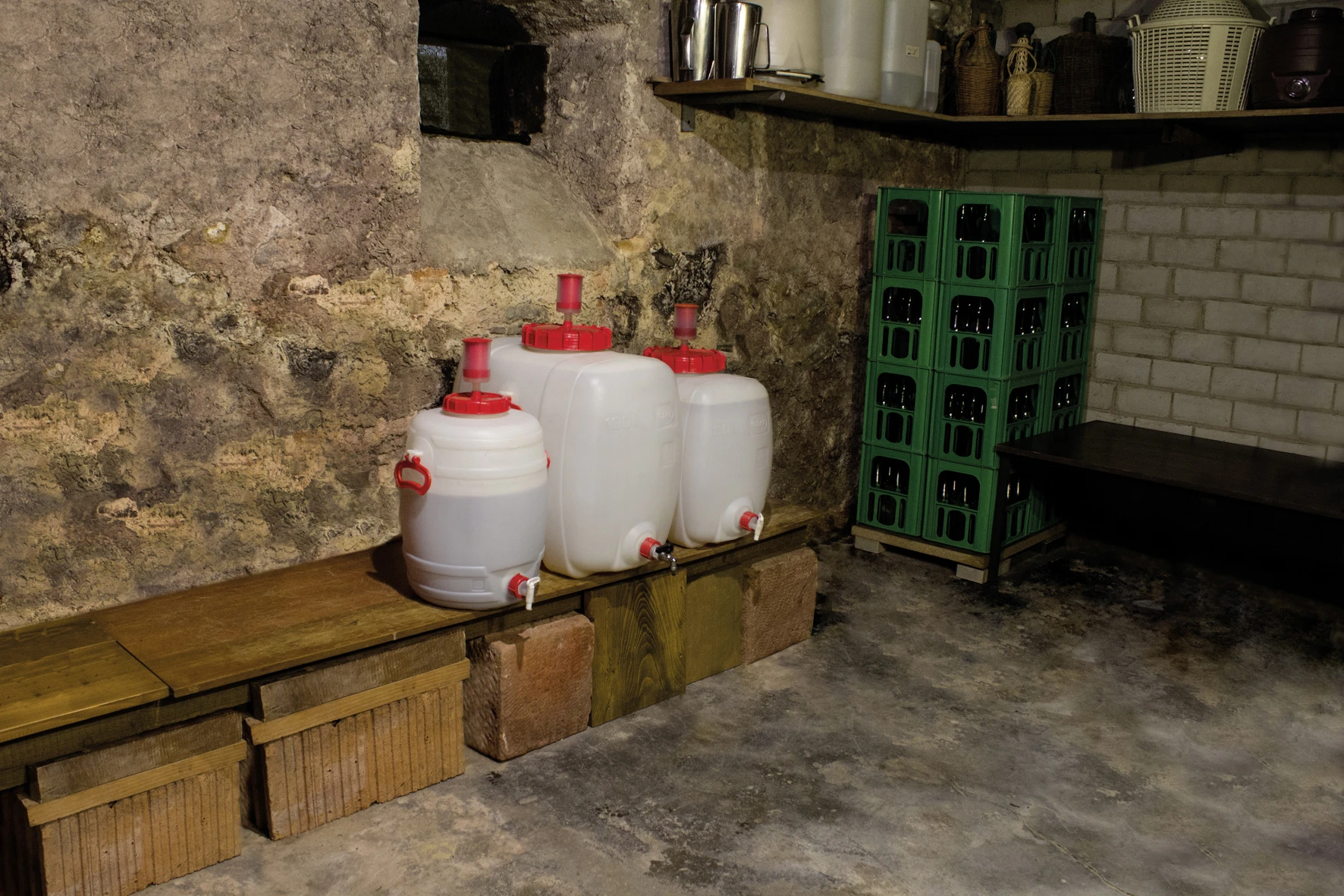 aus lebensmittelechtem Kunststoff, weiß. Mit Deckel und Auslauf-Verschlusskappe.