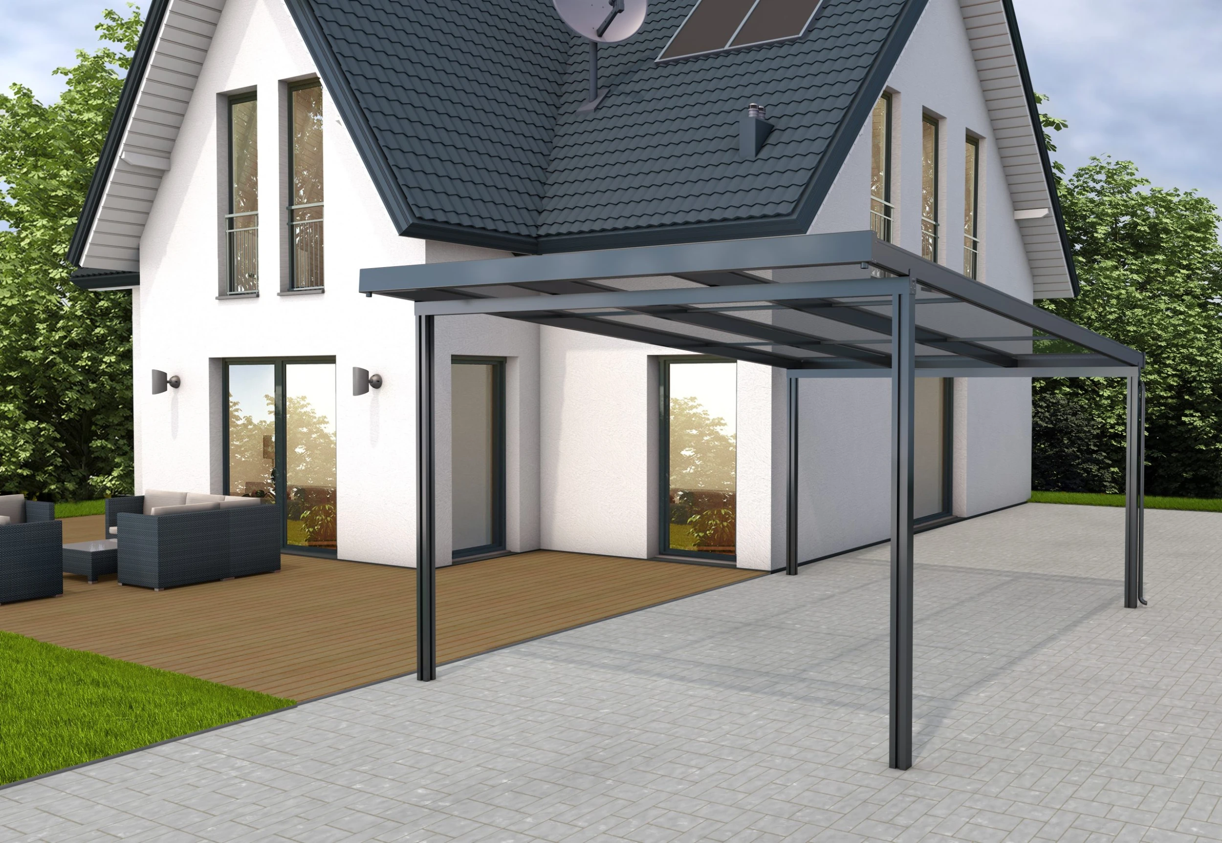 Der Premium Carport ist in Weiß oder Anthrazit erhältlich. Zur Dacheindeckung stehen 5 verschiedene 16 mm starke Plattentypen zur Wahl. Polycarbonat oder Acryl klar, getönt oder in Sonderausführungen. Zusätzlich können in den Carport Rückwände, Seitenwände eingebaut oder auch Windschutzelemente angebaut werden.