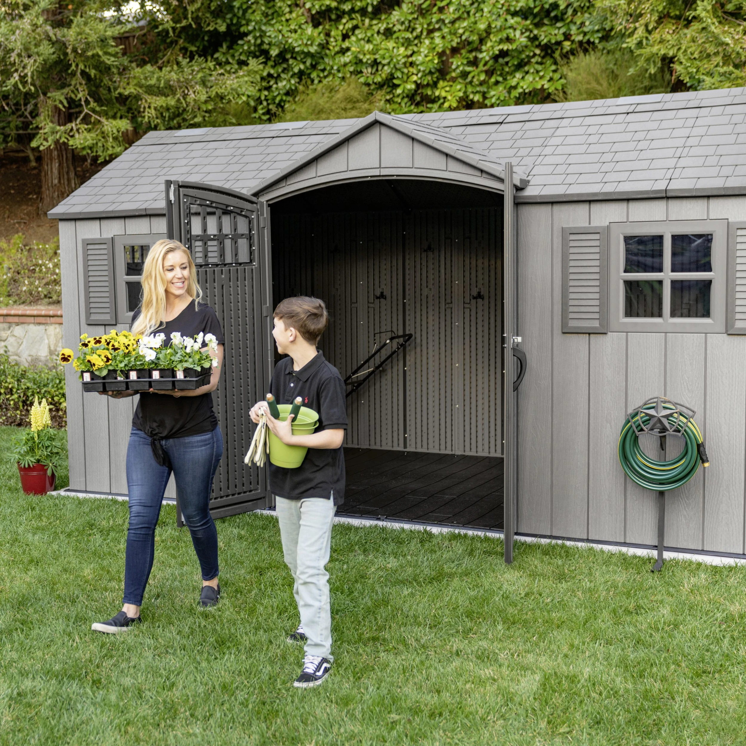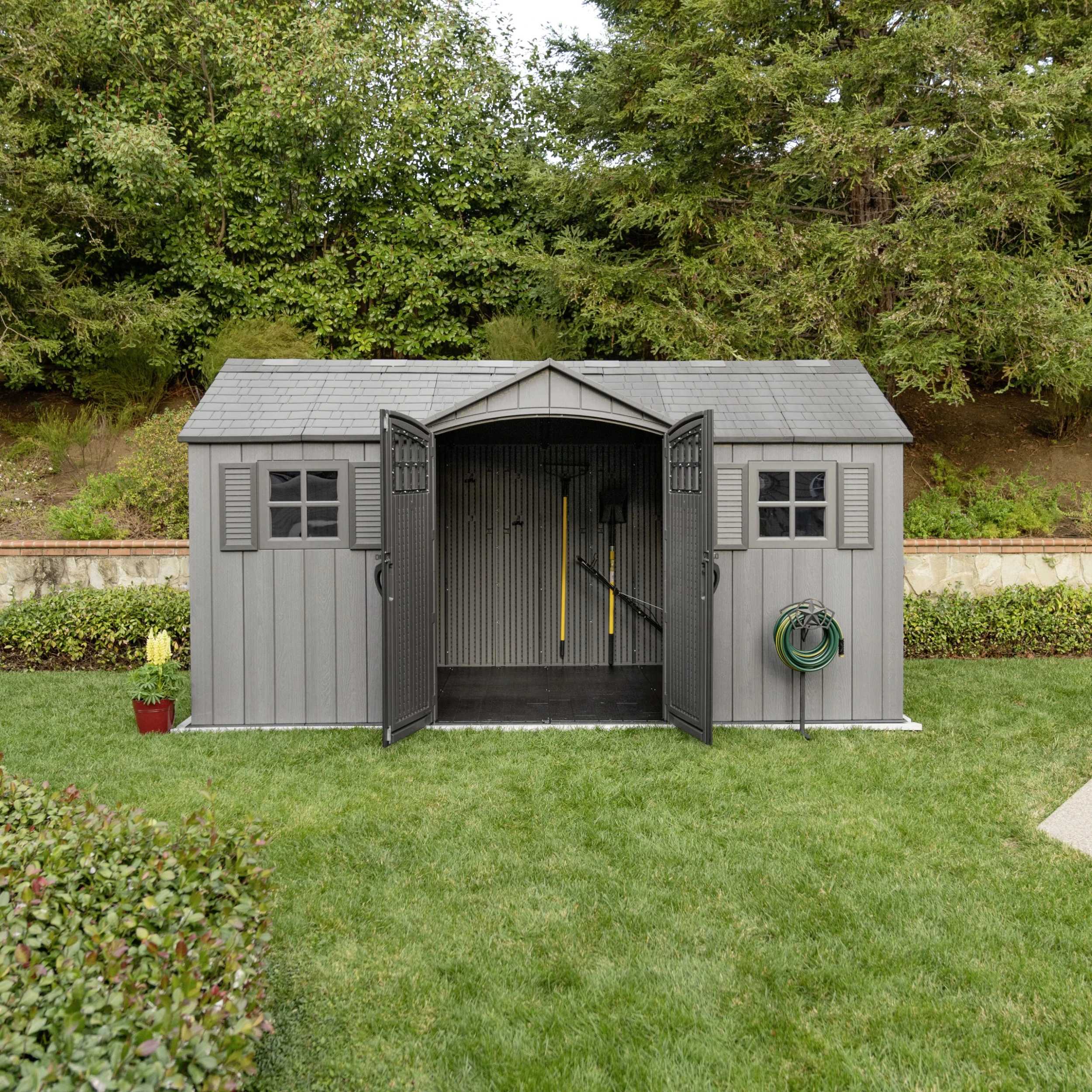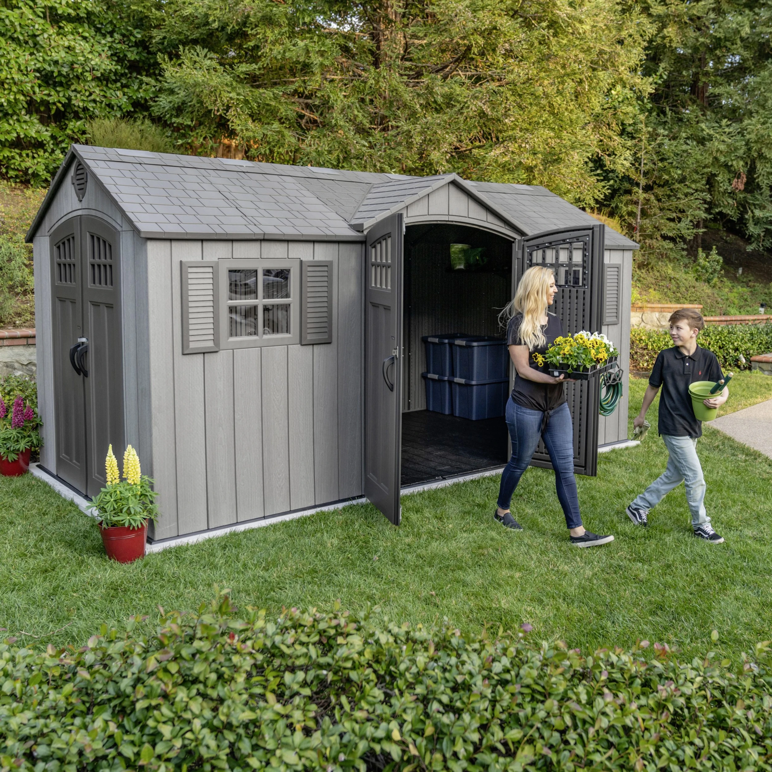 - Außenmaß inkl. Dachvorsprung: (Breite/Tiefe/Höhe) 457 x 244 x 244 cm