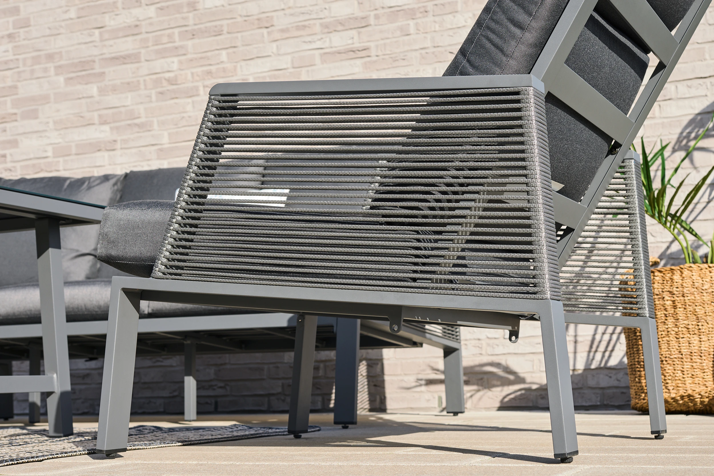 Ein Hauch von “La dolce Vita” bringt Ihnen unsere Neuheit das Lounge Set Cervia in den Garten. Die dekorative & witterungsbeständige Kunststoffschnürung in Kombination mit den farblich passenden Sitz- und Rückenkissen machen das Set zum Highlight auf jeder Terrasse.
