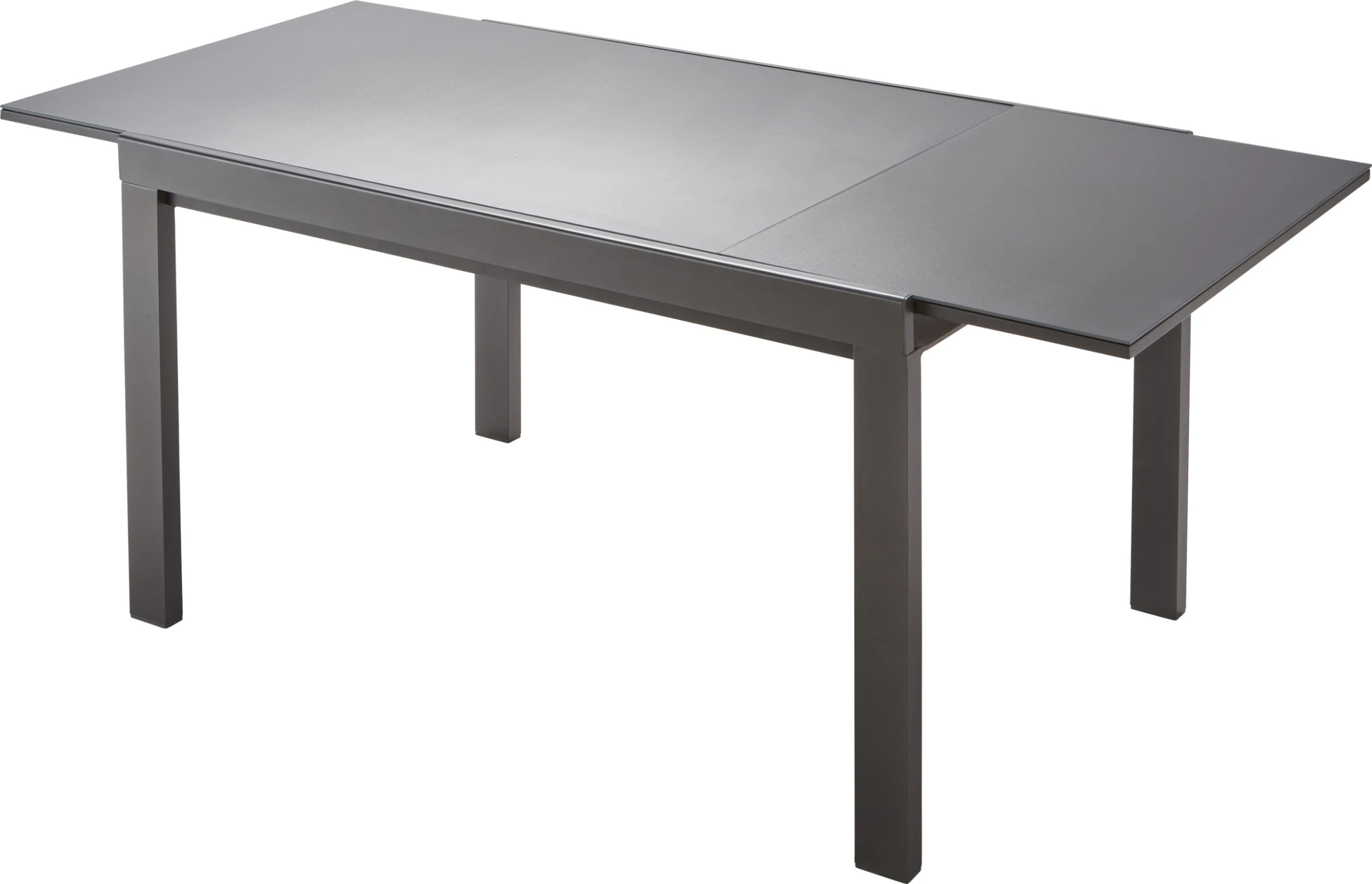 Der Ausziehtisch Arrezzo überzeugt aufgrund seiner variablen Größe. Ob im unausgezogenen Zustand von 140 x 90 cm, oder im ausgezogenen Zustand von 200 x 90 cm. Der Tisch Arezzo macht jederzeit eine gute Figur. Durch das hochwertige Aluminiumgestell in Kombination mit der grauen Struktuerglasplatte ist der Tisch wetterfest.