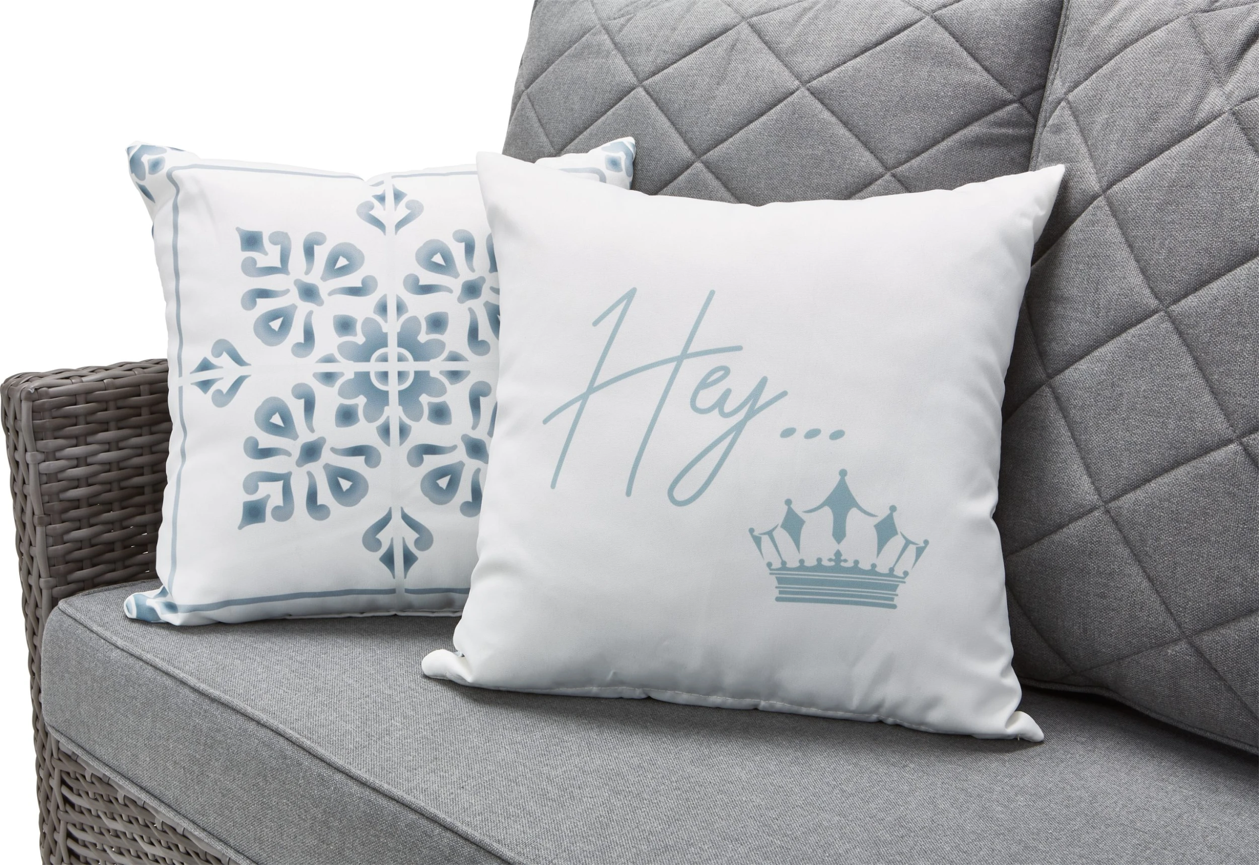 - Inkl. Sitz- und Rückenkissen und Dekokissen