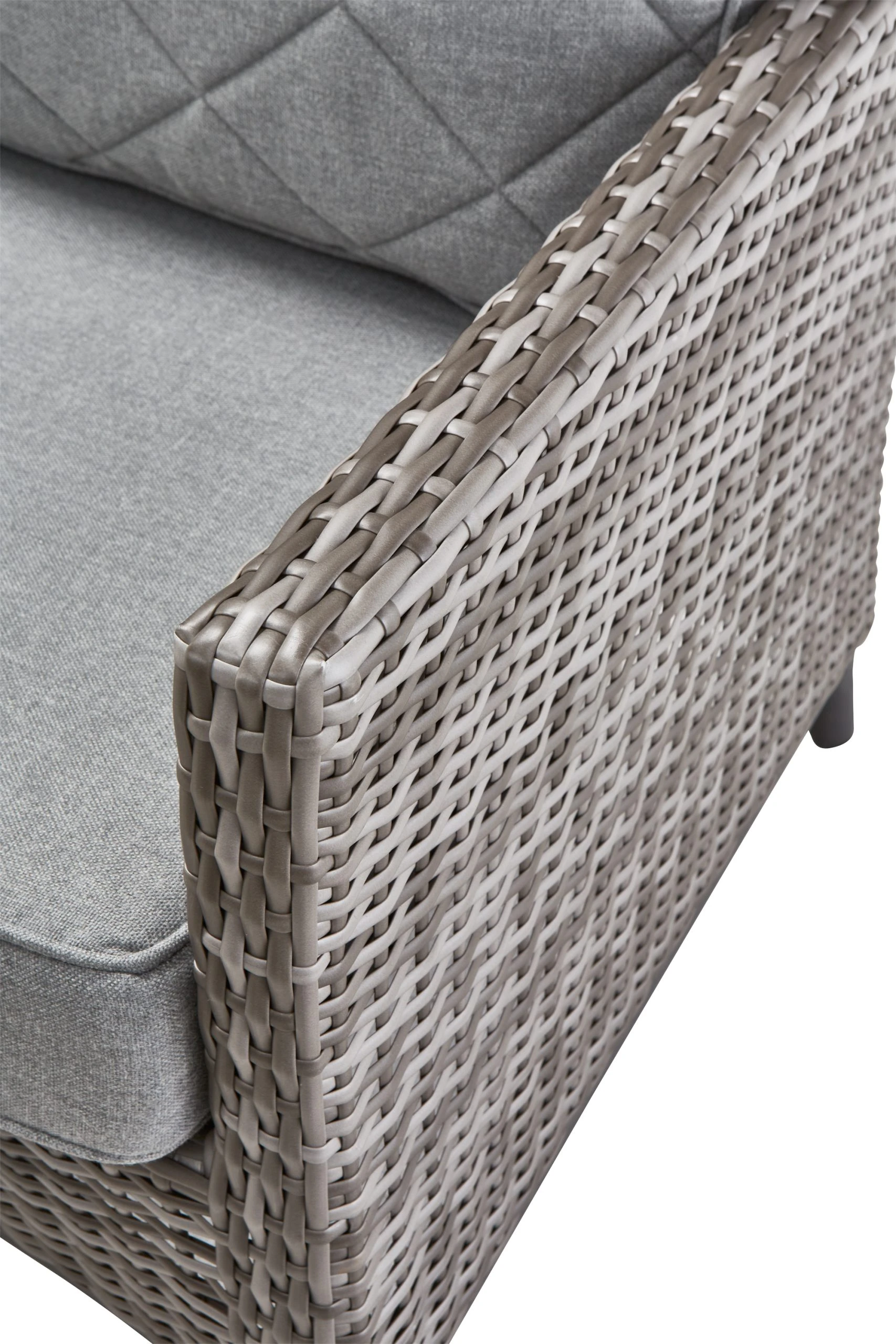 Mit der Dining Lounge Möbelgruppe Padula bringen Sie Eleganz und Design auf Ihre Terrasse. Das moderne Design der Rückenkissen in Abstimmung mit dem Kunststoffgeflecht in der Farbe stone grey geben dem Set das gewisse Etwas. Der hohe Tisch mit der aufliegenden Glaskeramikplatte eignet sich hervorragend um gemeinsam zu Essen.