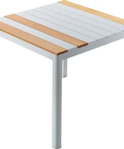 - Tischplatte: Mix aus Alu und Eukalyptus