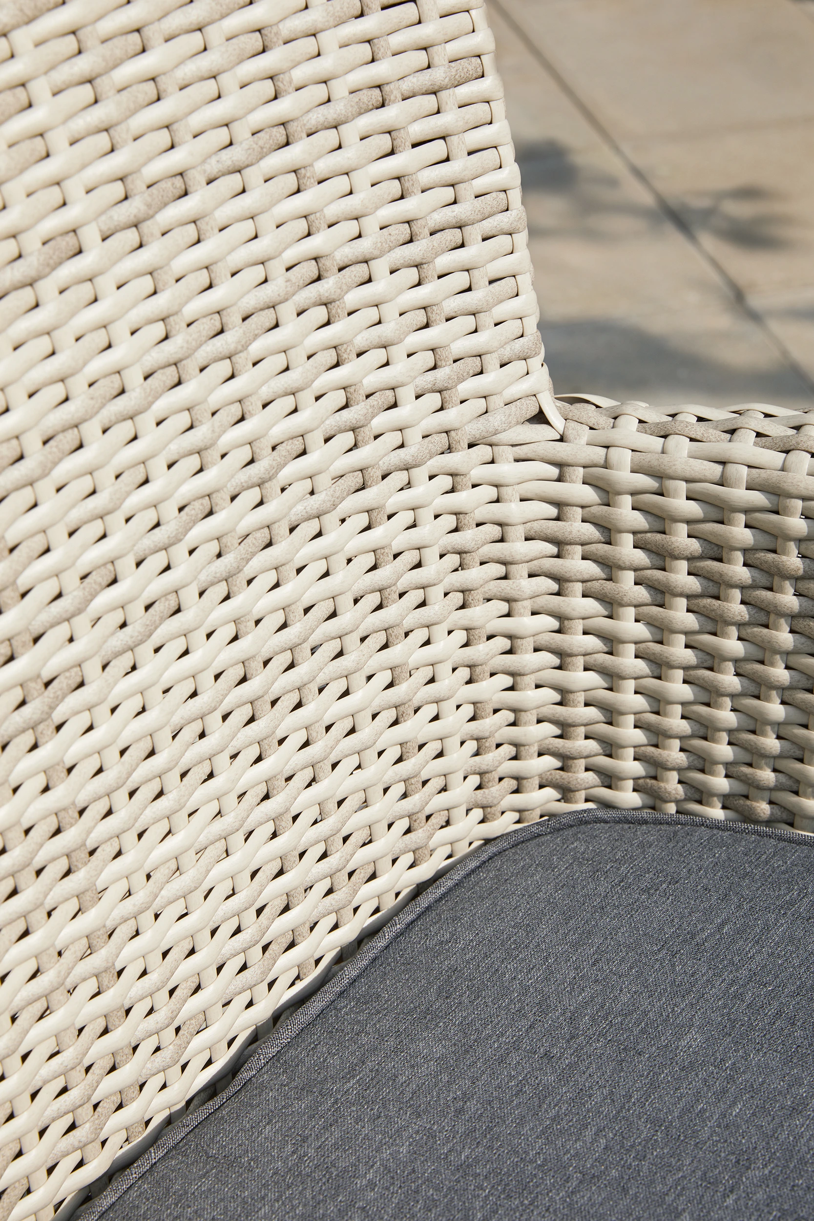 Schöner Diningsessel Nardo XL aus einen witterungsbeständigen Kunststoffgeflecht. Der Stuhl hat die Maße: 65 x 69 x 97 cm und eine Belastbarkeit von 110 kg. Passende Tische wie z.B. den Gartentisch Savona finden Sie ebenfalls in unserem Shop. Lieferumfang inkl. Sitzkissen.