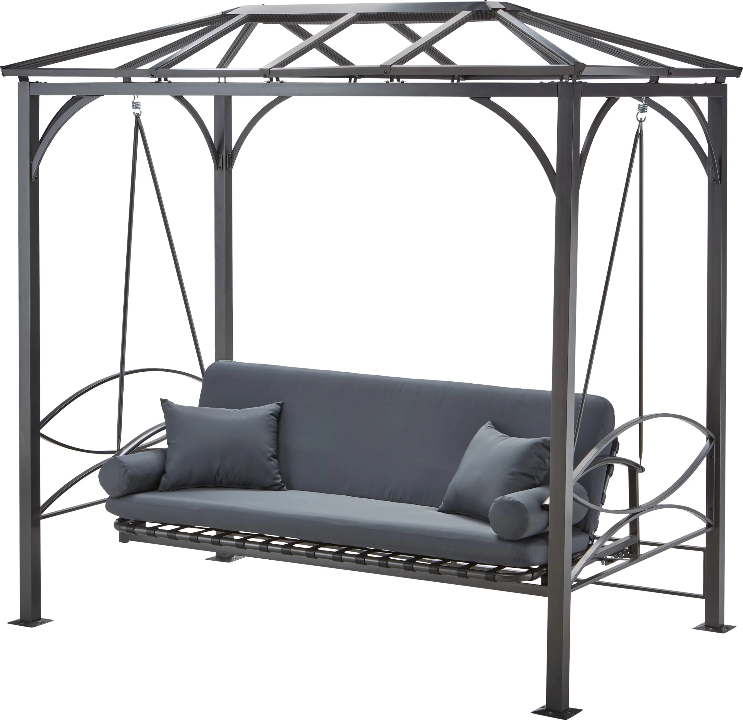 Genießen Sie Ihren Urlaub und den Sommer in ihm im eigenen Garten mit der Luxus Hollywoodschaukel der Marke Primaster. Das Grundgerüst besteht aus pulverbeschichter Alu-/Stahl-Rahmen und das Dach aus Polycarbonat-Platten (PC). Die gepolsterte Bank bietet Ihnen eine komfortablen Sitzkomfort und ist mit zusätzlichen Kissen ausgestattet. Die Schaukel hat eine Belastbarkeit von 330 kg. Ein Traum der keine Wünsche offen lässt in der Farbe anthrazit.