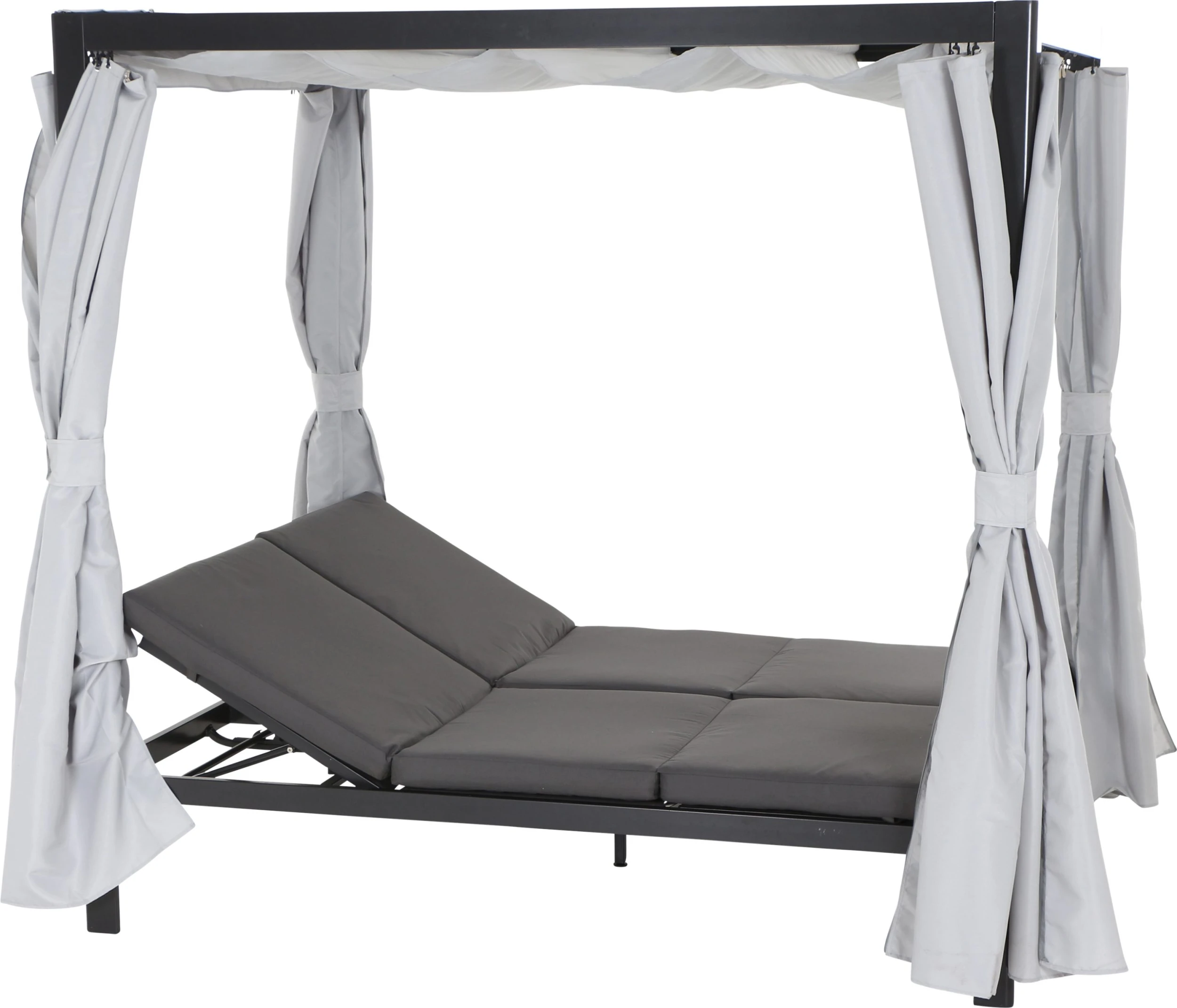 Von der Marke SIENA GARDEN wollen wir Ihnen das Sofabett Waikki vorstellen. Hochwertige Materialien kombiniert mit praktischer Funktionalität zeichnet das Sofabett aus. Die beiden Rückenlehnen sind unabhängig voneinander stufenlos verstellbar. Das Gestell ist aus pulverbeschichtetem Aluminium. Die Kissen sind aus hochwertigem Polyester hergestellt, die sich per Handwäsche leicht säubern lassen. Das Sofabett Waikki lädt zu entspannten Sommertagen in Ihrem Garten ein. Die pflegeleichte Handhabung ist ein weiteres Merkmal des Artikels. Außerdem handelt es sich hierbei um ein witterungsbeständiges Sofabett. 1 Sofabett 206x150x200cm, 49,78kg