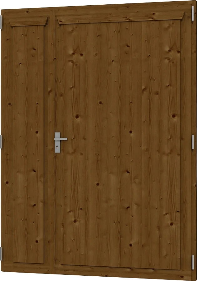 Rahmenaußenmaß: 148 x 198 cmAnschlag rechtsProfilzylinderschloss mit 3 SchlüsselnInklusive Drückergarnitur und BefestigungsmaterialDurchgangsmaß: 136,5 x 192 cmMaterial: Nordische FichteFarbbehandelt in Nussbaum