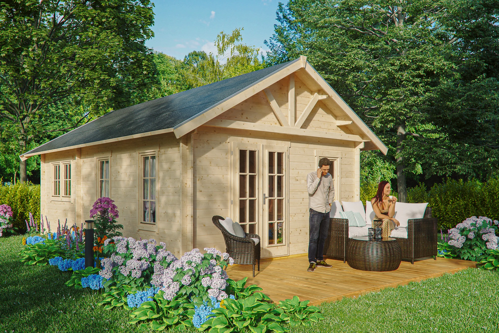 Größe 420 x 660 cmfarblich unbehandeltHaus mit 3 Räumen und Staubodenhochwertiges nordisches Fichtenholz4-seitig gehobelte 45 mm Wandbohlen mit Doppelnut und FederChalet-Eckfräsungen und unsichtbaren WindverbandFußboden 19 mm inkl. imprägnierten GrundlagernAußentür und Fenster mit Isolierglas und Gummidichtung sowie aufgesetztem Sprossenrahmen (Sprossenrahmen können wahlweise montiert oder weggelassen werden)Tür mit Profilzylinderschloss und 3 SchlüsselnDurchgangsmaß Tür B x H 112 x 181,5 cmDurchgangsmaß Innentür(en) B x H 81 x 186 cmFenster mit Aluminium-Abtropfkante und Dreh-Kipp-BeschlagDach 19 mm Profilschalung mit Nut und Feder sowie Aluminiumabschlusskante, inkl. 1 Lage Dachpappe zur ErsteindeckungDachschindeln als Zubehör erhältlich