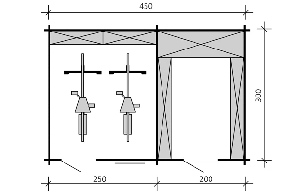 - Breite (Sockelmaß): 450 cm