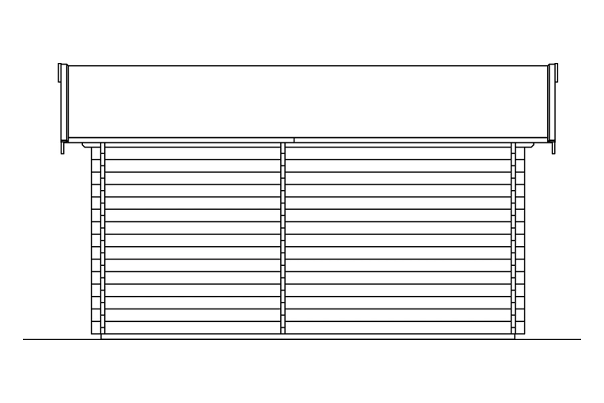 Dach aus 19 mm Profilschalung mit Nut und Feder, Konterlattung und 2. Schalung aus 19 mm Profilholz für die Eindeckung mit Dachschindeln, inkl. 1 Lage Dachpappe. Aluminiumschienen als Giebelabschluss. (Dachschindeln sind als Zubehör optional bestellbar)