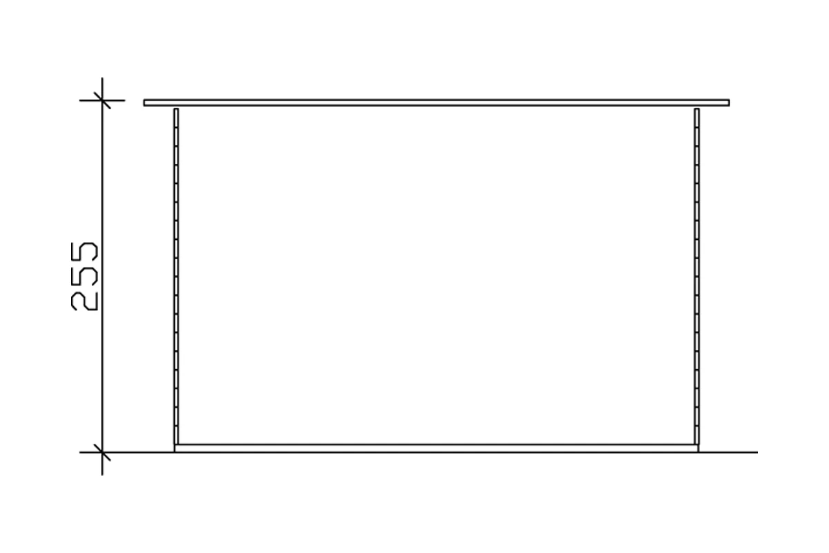 Das Dach besteht aus 19 mmDachschalung und einer Aluminium-Abschlusskante. Aufgrund der geringen Dachneigung ist eine Eindeckung mit Dachschindeln nicht möglich. Wir empfehlen die Eindeckung mit KSK-M Dachbahnen (sind optional als Zubehör erhältlich). Das Gefälle verläuft nach hinten.