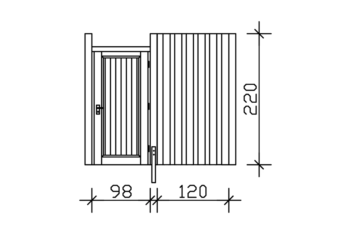 Seitenwand aus Deckelschalung inklusive Tür zum Einbau in einen SKAN HOLZ Carport.