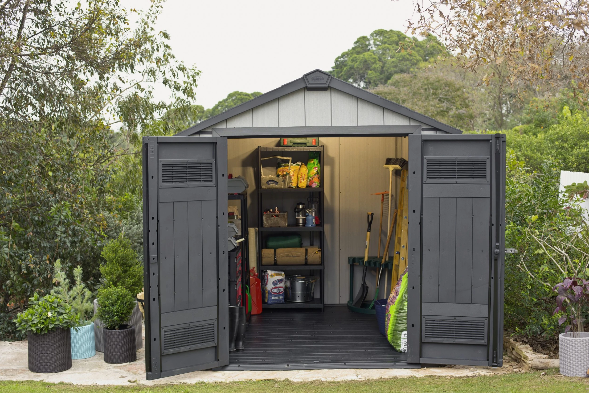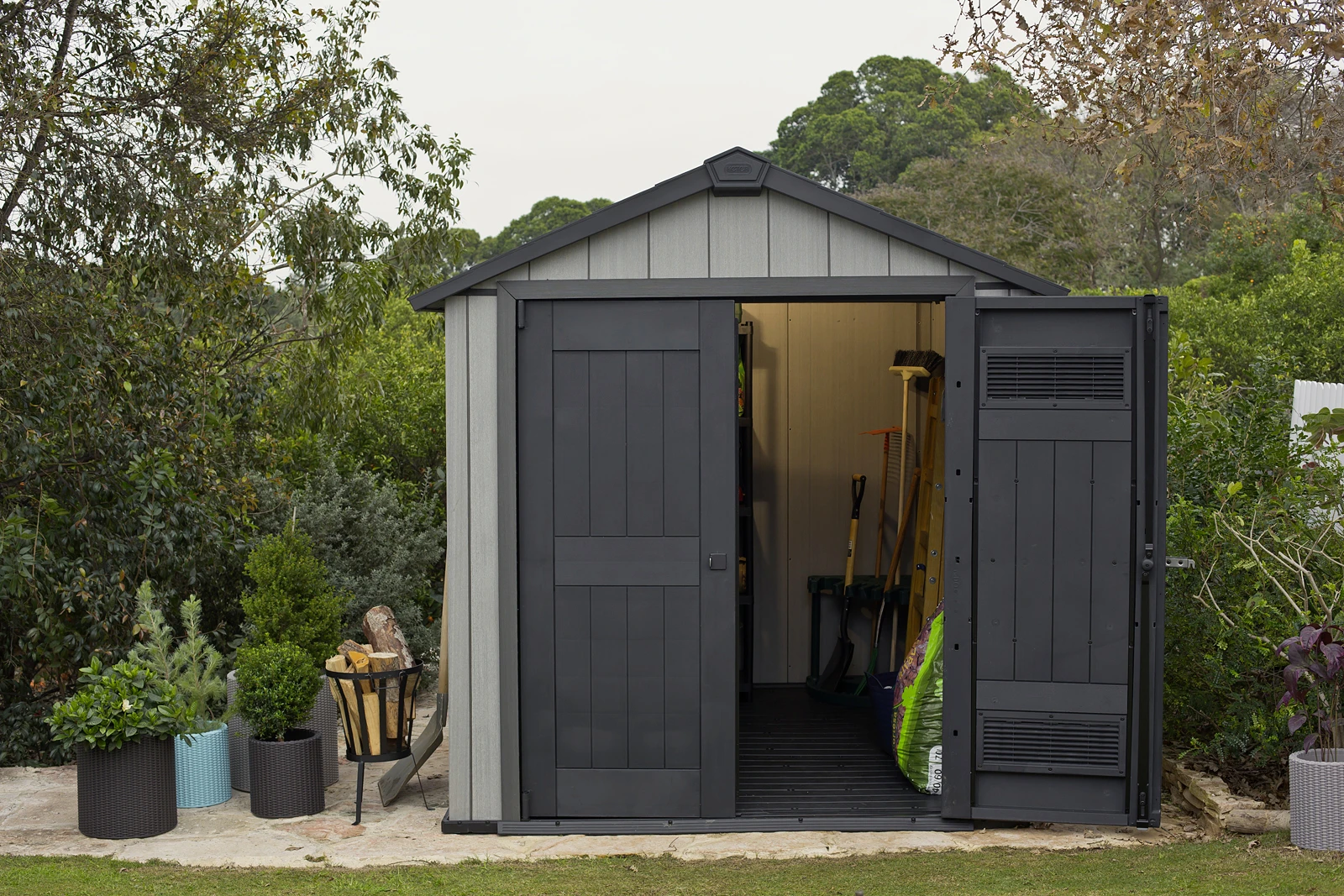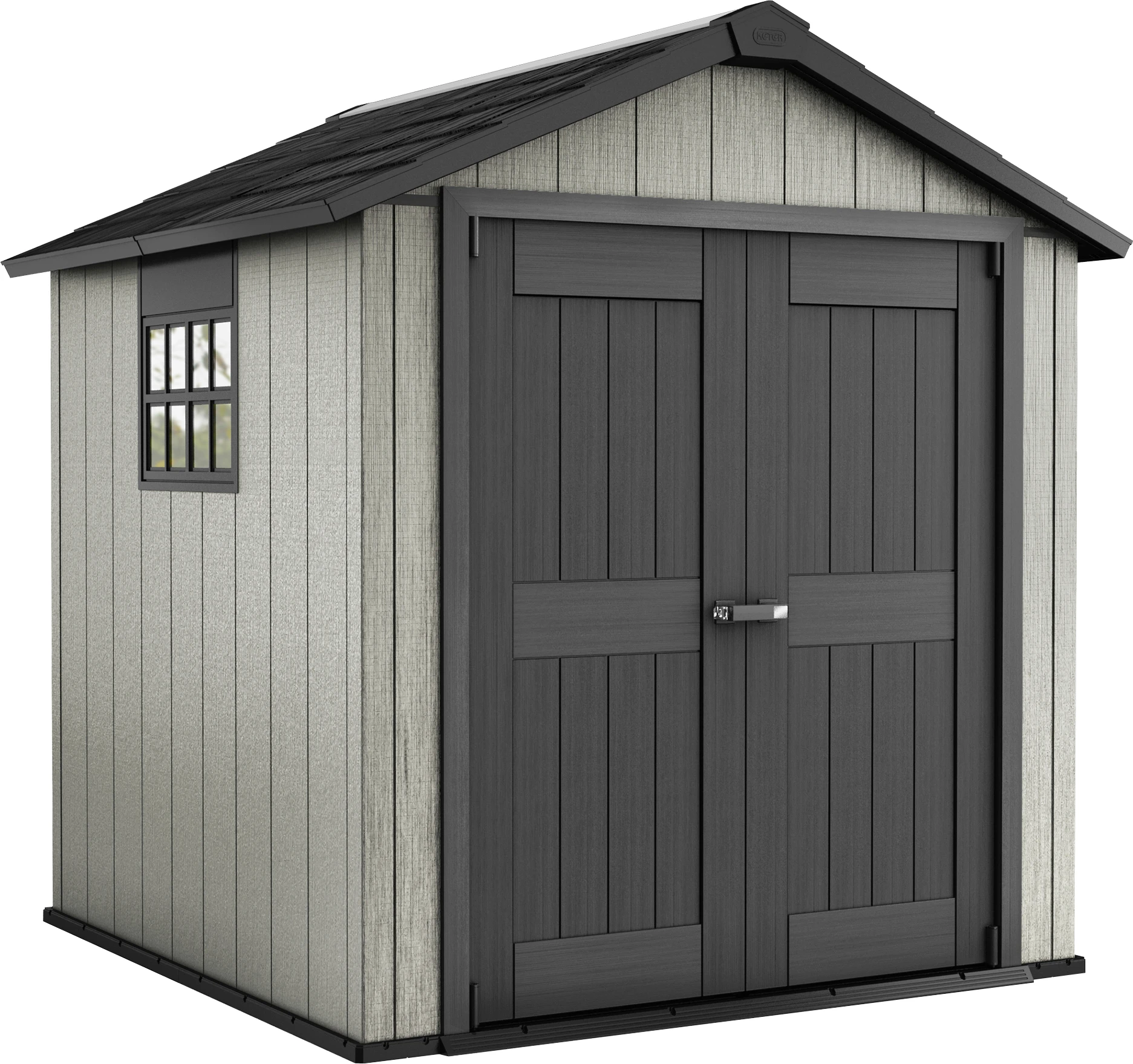 Für sein Hobby ausreichend Platz zu haben bedeutet Lebensqualität für jeden, der gerne im Garten arbeitet oder Spaß am Handwerkeln hat. Mit dem Kunststoffgerätehaus Oakland kommt jeder auf seine Kosten. Das Kunststoffgerätehaus besteht aus einem besonderen holzähnlichen Material. Durch die spezielle Verarbeitung fühlen sich die Kunststoffpaneele nicht nur holzähnlich an, sondern das Oakland sieht einem Holzhaus auch täuschend ähnlich. Die besonderen Eigenschaften des Kunststoffmaterials verschaffen langjährige Begeisterung ohne weiteren Arbeitsaufwand zu verursachen. Wer jedoch das Haus farblich individuell verändern möchte, kann es problemlos in seiner Wunschfarbe anstreichen. So bietet es Gestaltungsfreiraum für jeden Geschmack. Eine besonders schnelle Montage wird durch die vorgeschnittenen Nut-Feder-Paneele des Oakland Hauses möglich. Durch die großzügigen Doppeltüren können sogar sperrige Gegenstände im Haus verstaut werden. Eine optimale Tageslicht-Beleuchtung im Inneren des Hauses entsteht durch das Oberlicht und das Seitenfenster. Somit machen selbst kleinteilige Arbeiten im Oakland viel Spaß. Auch der Sicherheitsaspekt wurde nicht außer Acht gelassen: Das Türverschlusssystem aus Edelstahl bietet Schutz für den gesamten Inhalt des Kunststoffhauses. Das Oakland Haus vereint hohe Stabilität mit einem außergewöhnlichen naturnahen Design. Es ist die perfekte Wahl für jeden, der viel Freude an der individuellen farblichen Gestaltung des Hauses hat.