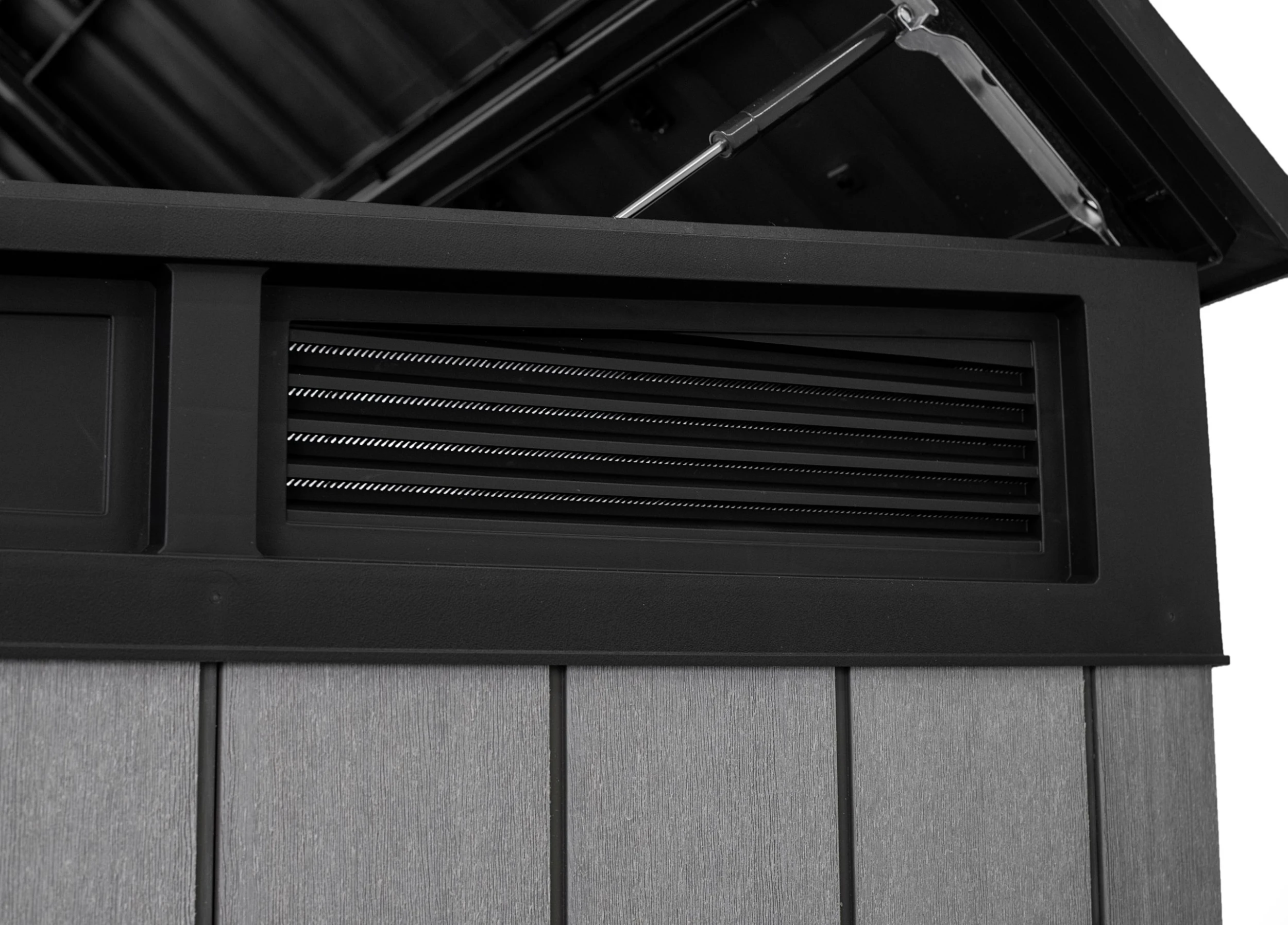 Für sein Hobby ausreichend Platz zu haben bedeutet Lebensqualität für jeden, der gerne im Garten arbeitet oder Spaß am Handwerkeln hat. Mit dem Kunststoffgerätehaus Oakland kommt jeder auf seine Kosten. Das Kunststoffgerätehaus besteht aus einem besonderen holzähnlichen Material. Durch die spezielle Verarbeitung fühlen sich die Kunststoffpaneele nicht nur holzähnlich an, sondern das Oakland sieht einem Holzhaus auch täuschend ähnlich. Die besonderen Eigenschaften des Kunststoffmaterials verschaffen langjährige Begeisterung ohne weiteren Arbeitsaufwand zu verursachen. Wer jedoch das Haus farblich individuell verändern möchte, kann es problemlos in seiner Wunschfarbe anstreichen. So bietet es Gestaltungsfreiraum für jeden Geschmack. Eine besonders schnelle Montage wird durch die vorgeschnittenen Nut-Feder-Paneele des Oakland Hauses möglich. Durch die großzügigen Doppeltüren können sogar sperrige Gegenstände im Haus verstaut werden. Eine optimale Tageslicht-Beleuchtung im Inneren des Hauses entsteht durch das Oberlicht und das Seitenfenster. Somit machen selbst kleinteilige Arbeiten im Oakland viel Spaß. Auch der Sicherheitsaspekt wurde nicht außer Acht gelassen: Das Türverschlusssystem aus Edelstahl bietet Schutz für den gesamten Inhalt des Kunststoffhauses. Das Oakland Haus vereint hohe Stabilität mit einem außergewöhnlichen naturnahen Design. Es ist die perfekte Wahl für jeden, der viel Freude an der individuellen farblichen Gestaltung des Hauses hat.