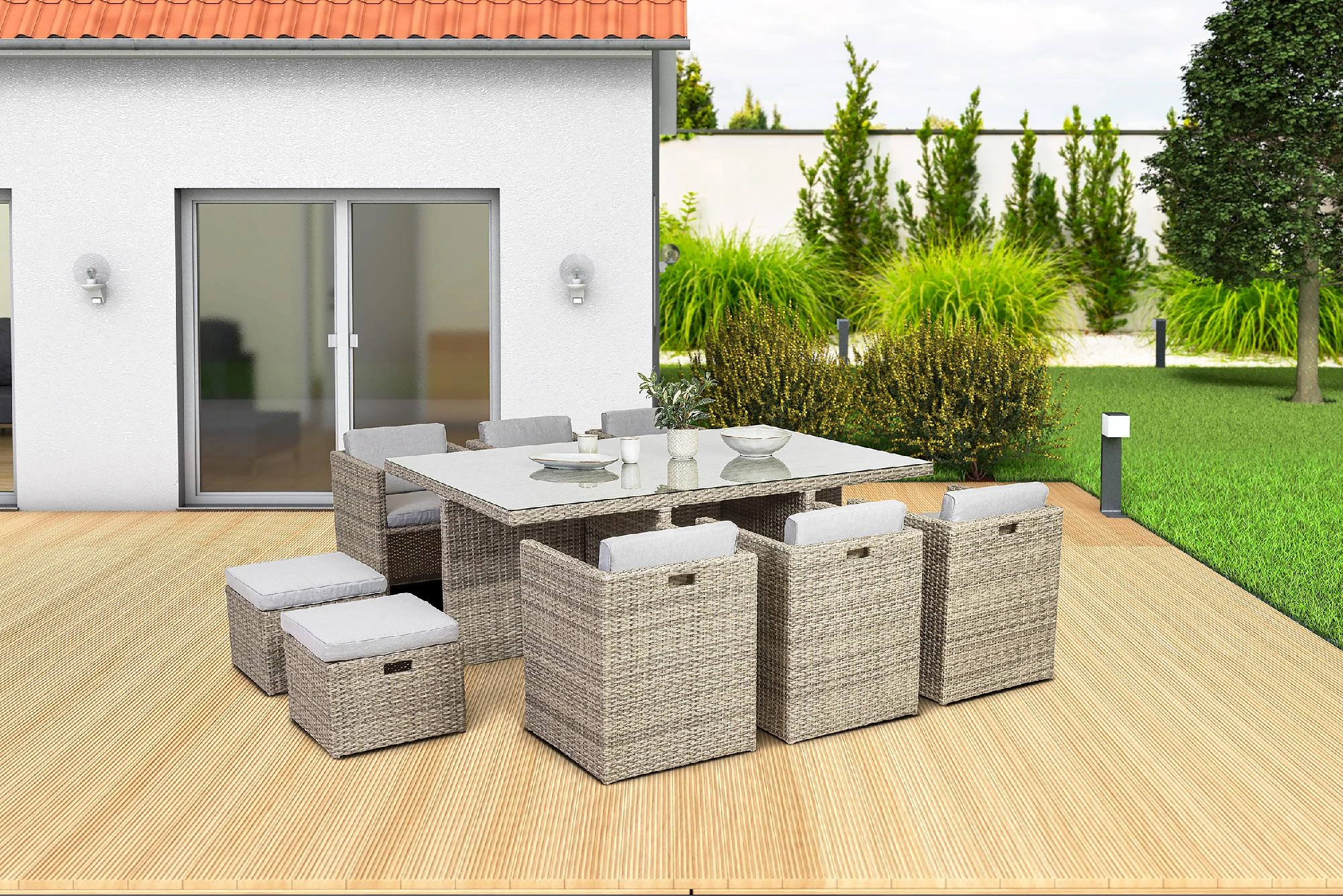 - Material: witterungsbeständiges Kunststoffgeflecht