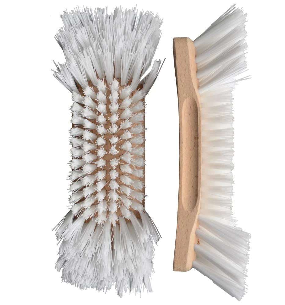 Handfassbürste Körper aus Holz, mit 6 Reihen eingearbeiteter Borsten, mit beidseitigem Bart.