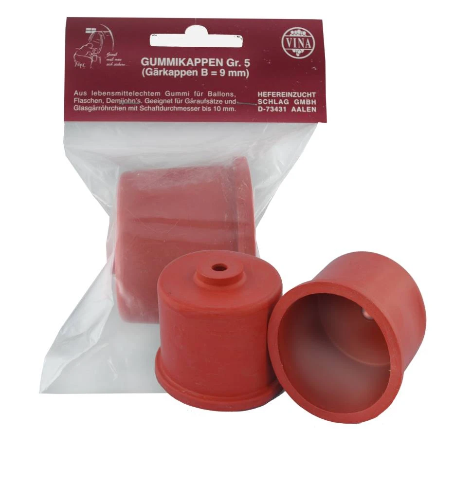 Mit Bohrung 9 mm, aus lebensmittelechtem, temperaturbeständigem Gummi. Zur Aufnahme eines Gäraufsatzes mit Schaftstärke bis 10 mm, für Weinheber, für Glasballons, Demijohns, o. ä.